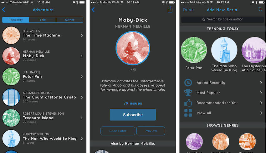 หากปณิธานปีใหม่ของคุณคือการอ่านหนังสือ Serial Reader เป็นหนึ่งในแอปพลิเคชันในการค้นหาหนังสือใหม่ๆ หรืออ่านในสิ่งที่เราเคยคิดอยากจะอ่านมาตลอด พร้อมทั้งช่วยให้การอ่านของเราง่ายขึ้น เพราะแอปพลิเคชันจะแบ่งหนังสือออกเป็นส่วนๆ ยาวประมาณ 10-20 นาที และทยอยส่งให้ผู้อ่าน โดยมีหนังสือให้เลือกกว่า 900 รายการที่เราสามารถอ่านตามความเร็วของเรา นอกจากนี้เรายังจะได้รับรางวัลหลังจากอ่านหนังสือจบเพื่อเป็นการจูงใจให้นิสัยการอ่านกลายเป็นส่วนหนึ่งของชีวิตประจำวัน