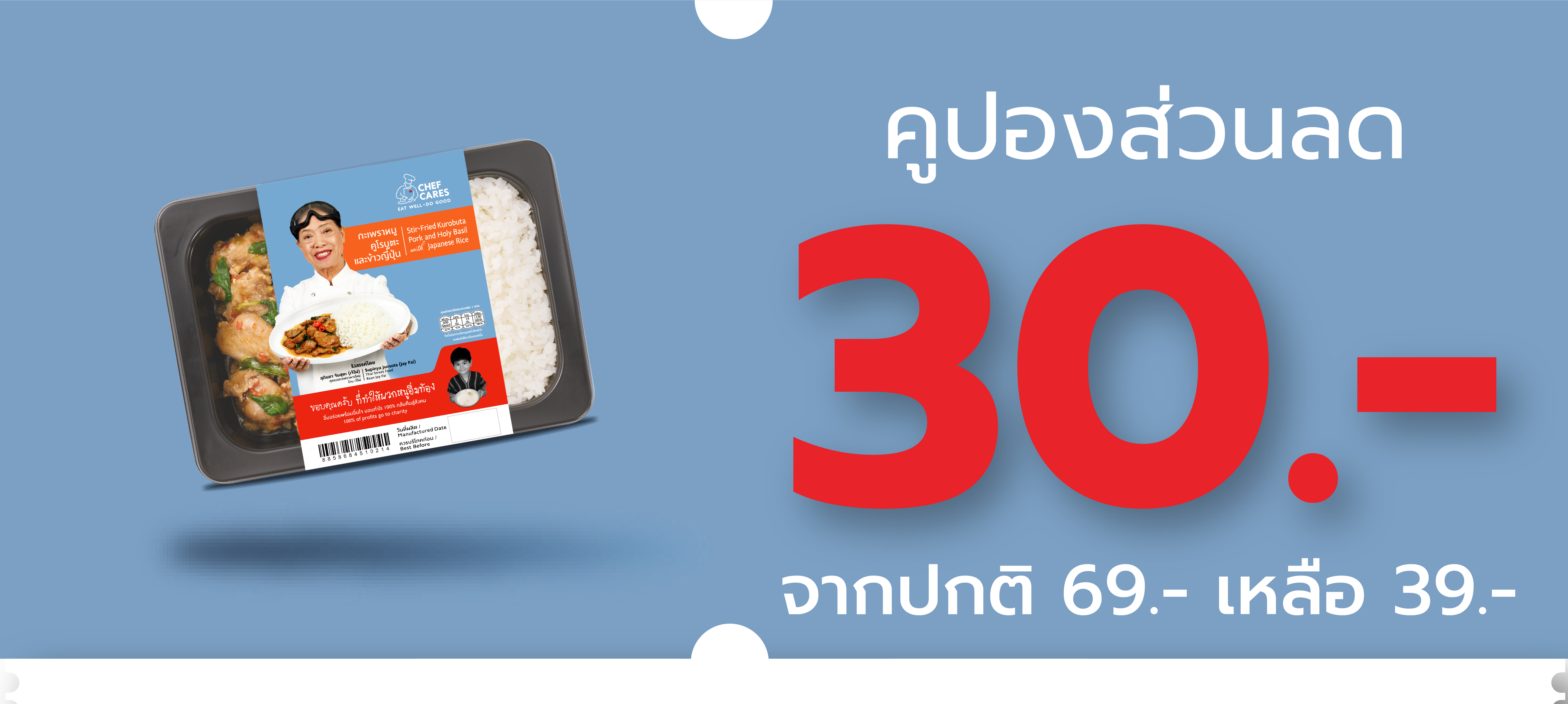 ขยายเวลาโปรลับสำหรับครอบครัวซีพี บริษัทขอมอบความอร่อยสุขภาพดีจากเชฟแคร์สให้เพื่อนพนักงาน กับของขวัญพิเศษ คูปองส่วนลด 30 บาท สำหรับซื้อเชฟแคร์ส อาหารอร่อยพรีเมี่ยม จากท็อปเชฟของไทย จากราคา 69 บาท เหลือเพียง 39 บาทเท่านั้น เพียงนำ Barcode ไปแสดงที่ร้าน 7-Eleven หรือ App 7 ใช้ได้กับทุกเมนู ตั้งแต่วันนี้ – 30 มิ.ย. 65 หรือจนกว่าคูปองจะหมด
