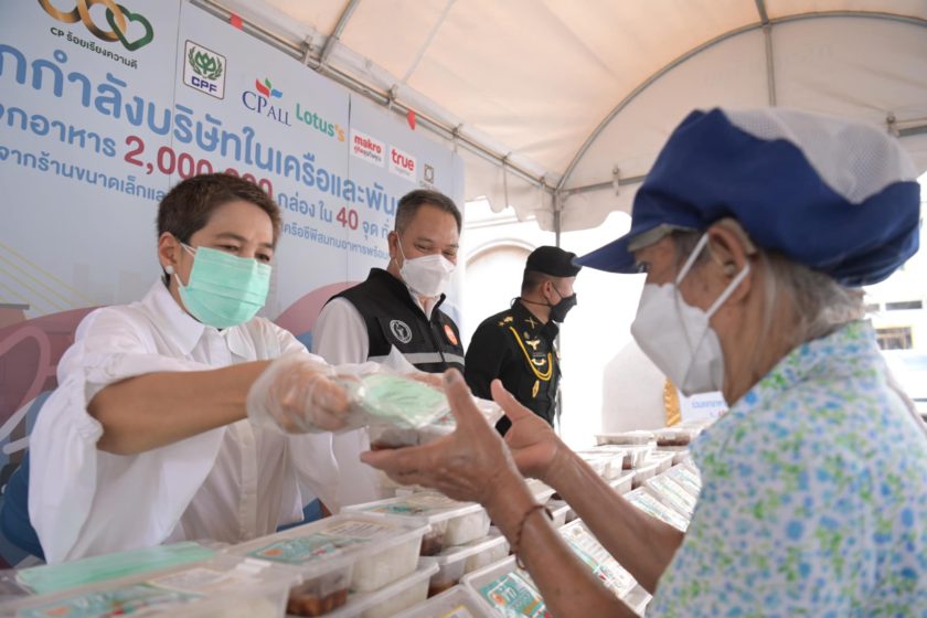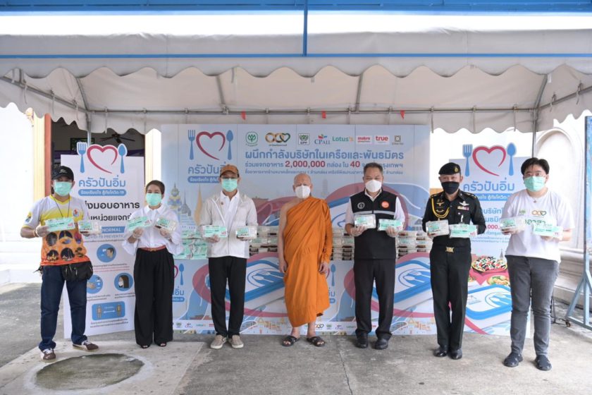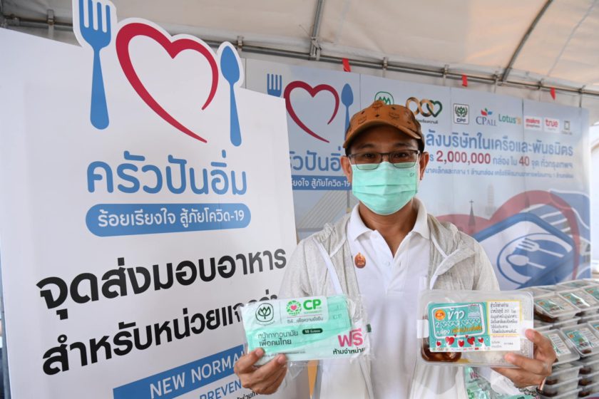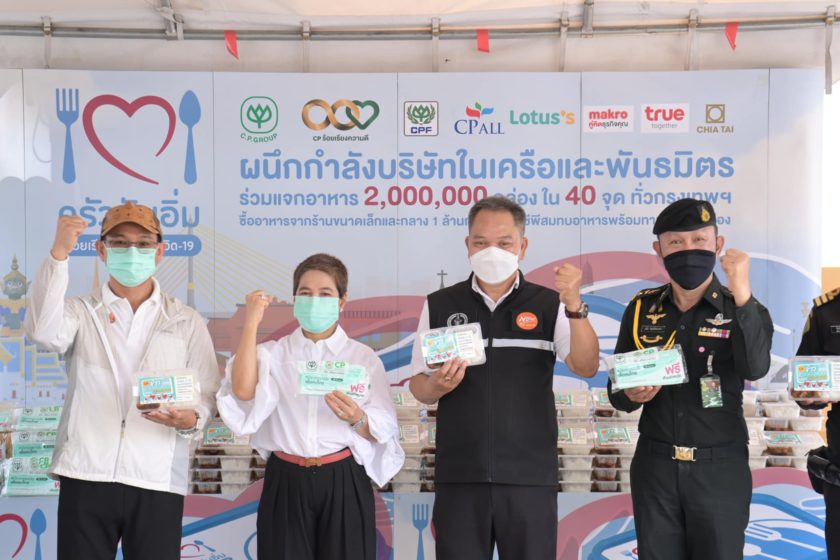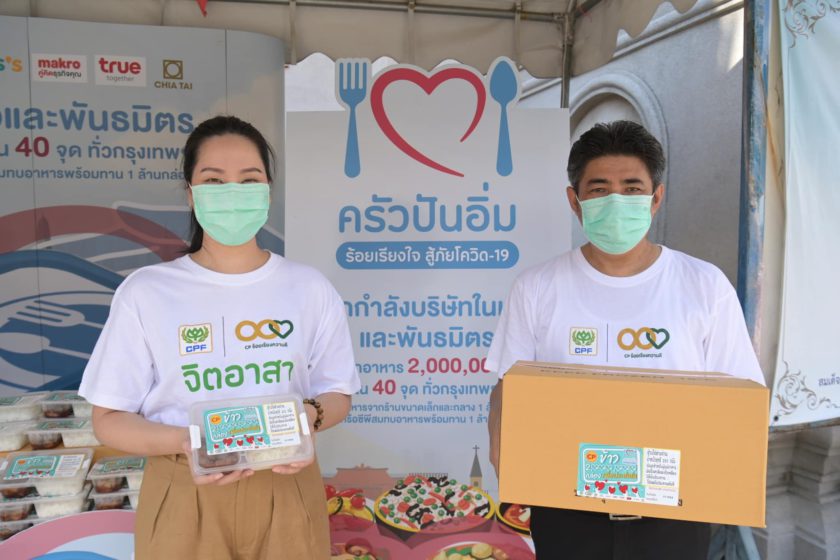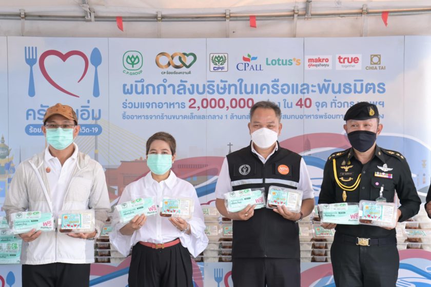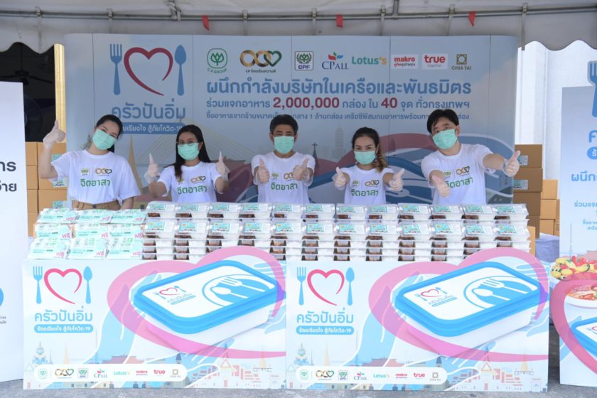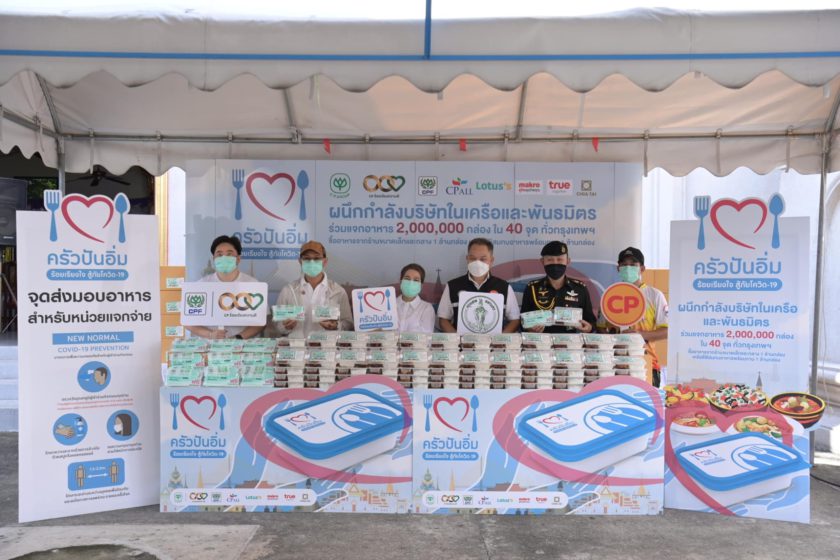โครงการ “ครัวปันอิ่ม ซีพีร้อยเรียงใจ สู้ภัยโควิด-19” เป็นการผนึกกำลังของเครือ CP-CPF ร่วมกับ พันธมิตร มากกว่า 400 องค์กร ส่งมอบข้าวกล่องอุ่นร้อนพร้อมทาน 2 ล้านกล่อง ประกอบด้วย 1 ล้านกล่องแรก ซื้อจากร้านอาหารรายย่อย และอีก 1 ล้านกล่อง จาก CPF เป็นอาหารที่ปรุงใหม่ สุก สะอาด ถูกสุขอนามัย มีเมนูอาหารที่หลากหลาย โดยเครือข่ายจิตอาสา มูลนิธิ และหน่วยงานพันธมิตร จะรับอาหารจาก 40 จุด กระจายสู่ชุมชนต่างๆ ทั่วกรุงเทพฯ และปริมณฑล เพื่อช่วยบรรเทาความเดือดร้อนแก่ผู้ที่ขาดรายได้ ว่างงาน กลุ่มเปราะบาง กลุ่มที่กักตัวดูอาการ และผู้ที่รักษาตัวที่บ้าน (Home Isolation) ตลอดจนช่วยอุดหนุนธุรกิจร้านอาหารรายย่อยให้มีรายได้ในสถานการณ์เช่นนี้