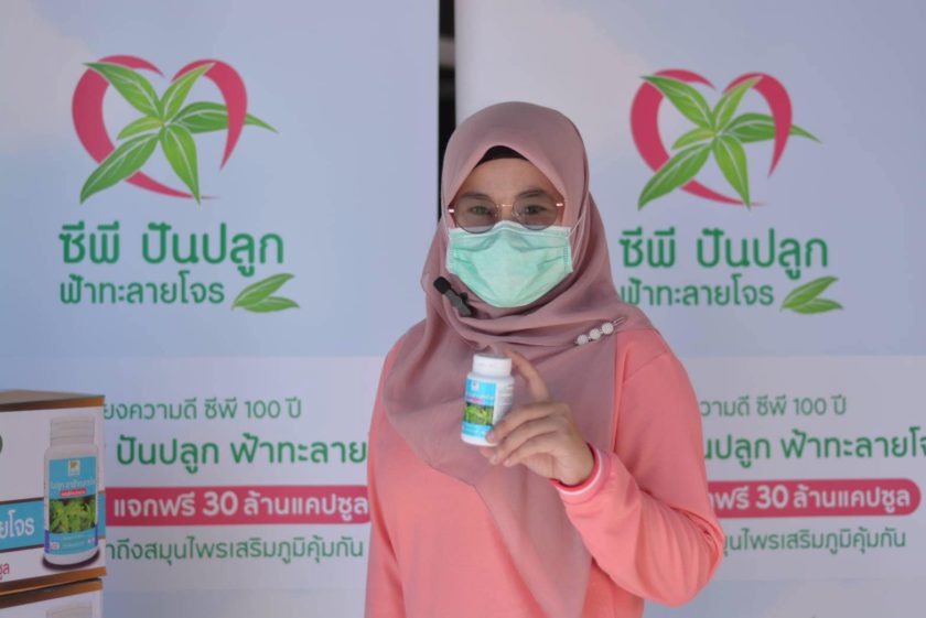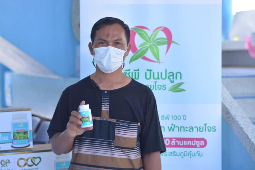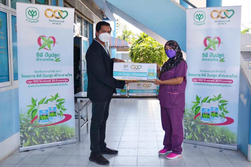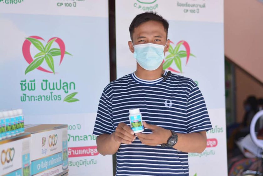โครงการ “ซีพี ปันปลูก ฟ้าทะลายโจร” ภายใต้แนวคิด “ร้อยเรียงความดีซีพี 100 ปี” เกิดจากนโยบายของประธานอาวุโส ธนินท์ เจียรวนนท์ ที่ต้องการเพิ่มโอกาสให้ประชาชนได้เข้าถึงยาสมุนไพรไทย โดยเริ่มปลูกต้นฟ้าทะลายโจรบนพื้นที่ 100 ไร่ ที่ศูนย์วิจัยแสลงพัน และฟาร์มคำพราน จ.สระบุรี และนำมาผลิตสมุนไพรฟ้าทะลายโจร 30 ล้านแคปซูล แจกฟรีแก่กลุ่มเปราะบางทั่วประเทศ โดยให้ทุกกลุ่มธุรกิจผนึกกำลังส่งมอบยาสมุนไพรฯ อย่างทั่วถึง สำหรับ CPF ร่วมส่งมอบแก่ประชาชนในพื้นที่ 4 จังหวัดชายแดนใต้ ได้แก่ สงขลา ปัตตานี ยะลา นราธิวาส และนครราชสีมา ตลอดจนพื้นที่กรุงเทพฯ ผ่านกลุ่มและองค์กรพันธมิตร