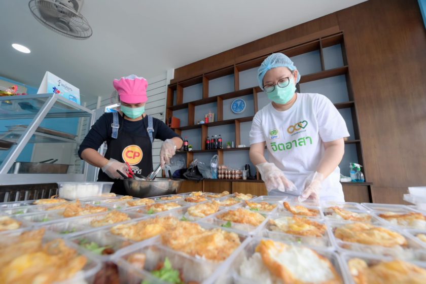 โครงการ “ครัวปันอิ่ม ซีพีร้อยเรียงใจ สู้ภัยโควิด-19” ส่งมอบอาหารอุ่นร้อนพร้อมทาน 2 ล้านกล่อง ประกอบด้วย 1 ล้านกล่อง ซื้อจากร้านอาหารรายย่อย และอีก 1 ล้านกล่อง เป็นการสมทบอาหารจาก CPF ซึ่งปรุงสุกใหม่ทุกวัน สด สะอาด ถูกหลักโภชนาการ โดยเครือข่ายจิตอาสา ภาคประชาสังคม สื่อมวลชน รวมทั้งชาวชุมชน ระดมน้ำใจเป็นสะพานบุญแจกจ่ายข้าวกล่อง จาก 40 จุด เพื่อแบ่งปันความอร่อยให้ถึงมือประชาชนทั่วกรุงเทพฯ และปริมณฑล