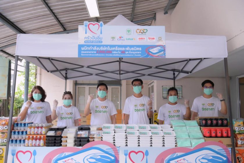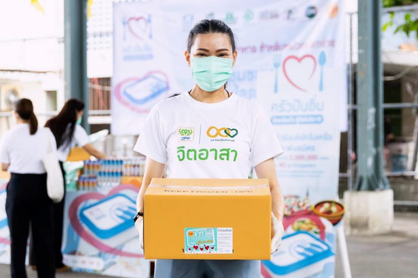 เป็นระยะเวลา 2 เดือน ที่เครือ CP-CPF มูลนิธิ และพันธมิตรมากกว่า 400 องค์กร ผนึกกำลังดำเนินโครงการ “ครัวปันอิ่ม ซีพีร้อยเรียงใจ สู้ภัยโควิด-19” เพื่อแจกจ่ายข้าวกล่องอุ่นร้อนพร้อมทาน 2 ล้านกล่อง แก่ประชาชนที่อาศัยในพื้นที่กรุงเทพฯ และปริมณฑล พร้อมเปิดโอกาสให้ร้านอาหารรายย่อยสมัครเข้าร่วมโครงการฯ ซึ่งได้รับความสนใจอย่างล้นหลาม จนคณะกรรมการคัดเลือกร้านที่มีคุณสมบัติเหมาะสมมากกว่า 1,400 ร้าน เพื่อร่วมเป็นส่วนหนึ่งในการแบ่งปันความอิ่มอร่อย 1 ล้านกล่อง และอีก 1 ล้านกล่อง เป็นการสมทบอาหารจาก CPF ซึ่งปรุงสุกใหม่ทุกวัน สด สะอาด ถูกหลักโภชนาการ โดยเครือข่ายจิตอาสา ภาคประชาสังคม สื่อมวลชน รวมทั้งชาวชุมชน ระดมน้ำใจเป็นสะพานบุญแจกจ่ายข้าวกล่อง เพื่อแบ่งปันความอร่อยให้ถึงมือประชาชน