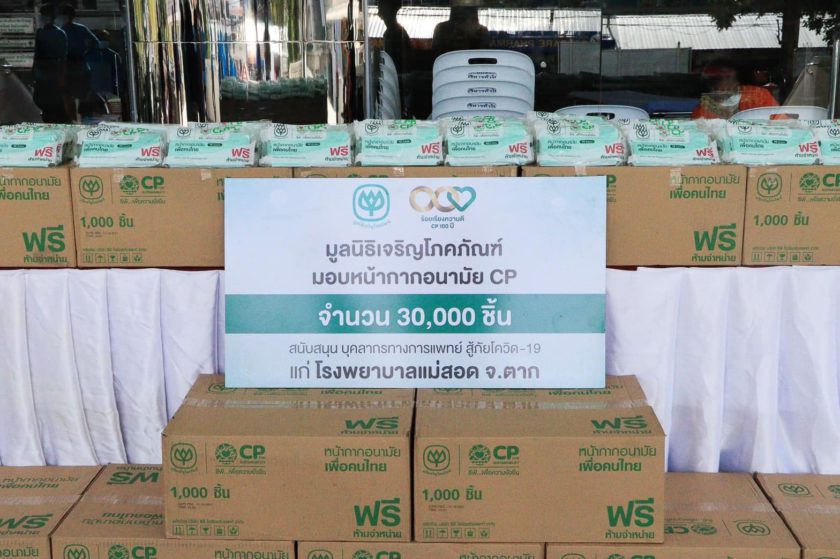 ทั้งนี้ เครือซีพี เดินหน้ามอบหน้ากากอนามัยทางการแพทย์ให้กับโรงพยาบาลที่ขาดแคลนทั่วประเทศแล้ว กว่า 28 ล้านชิ้น นอกจากนี้ ยังส่งมอบอาหาร 2 ล้านกล่อง ให้ชุมชนภายใต้โครงการ “ครัวปันอิ่ม ซีพี ร้อยเรียงใจ สู้ภัยโควิด-19” กว่า 40 จุด ทั่วกรุงเทพฯ และปริมณฑล ล่าสุด เดินหน้าโครงการ “ซีพี ปันปลูก ฟ้าทะลายโจร” ภายใต้แนวคิด “ร้อยเรียงความดีซีพี 100 ปี” ปลูกและผลิตยาสมุนไพร แจกฟรี 30 ล้านแคปซูล ให้ประชาชนกลุ่มเปราะบาง บริษัทฯ หวังเป็นอย่างยิ่งว่า จะเป็นส่วนหนึ่งที่ช่วยให้บุคลากรทางการแพทย? ประชาชน และประเทศไทย ก้าวผ่านวิกฤตนี้ไปด้วยกัน