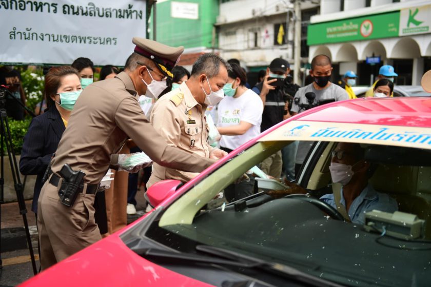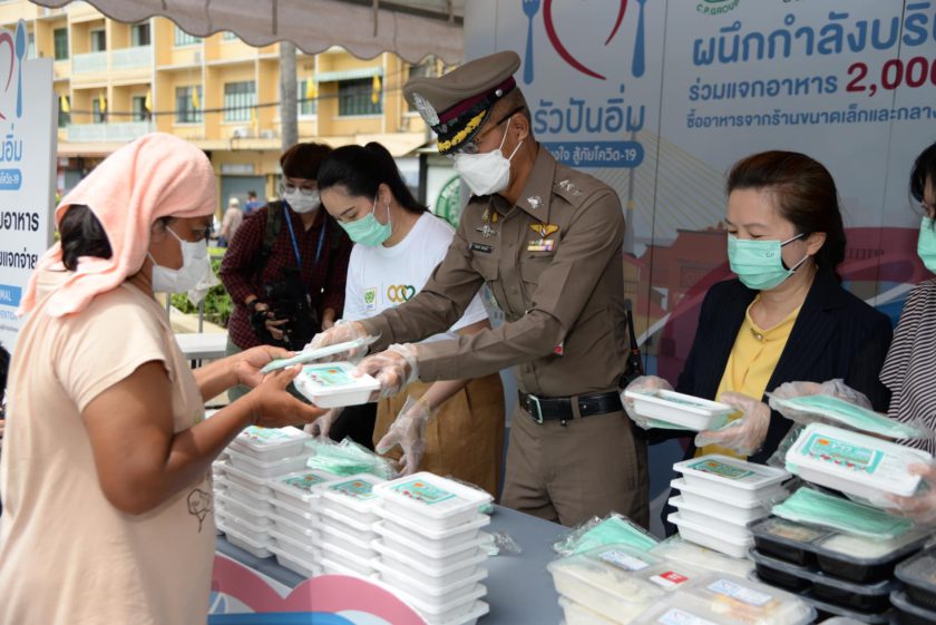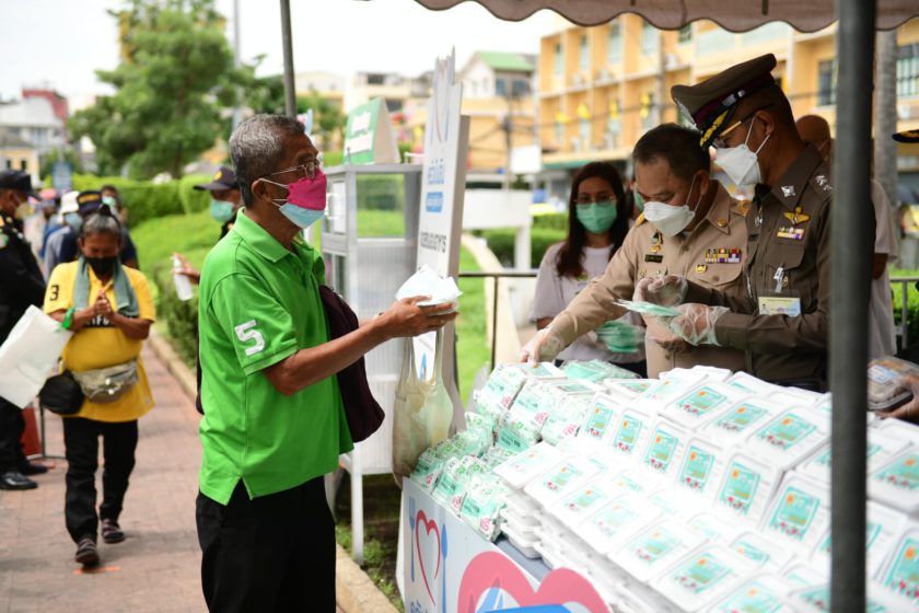 ว่าที่ร้อยตรีฤทธิพันธ์ นันทศุภกร รักษาการผู้อำนวยการเขตพระนคร พร้อมด้วย พ.ต.อ.สนอง แสงมณี ผู้กำกับการ สน.ชนะสงคราม ร่วมกับ เครือ CP-CPF และข้าวตราฉัตร มอบข้าวกล่องอุ่นร้อนพร้อมทานและหน้ากากอนามัย ภายใต้โครงการ “ครัวปันอิ่ม ซีพีร้อยเรียงใจ สู้ภัยโควิด-19” ส่งมอบให้คนไร้บ้าน เจ้าหน้าที่และผู้ป่วยในศูนย์พักคอย วัดอินทรวิหาร พระอารามหลวง รวมถึงประชาชน 20 ชุมชน เพื่อบรรเทาความเดือดร้อนช่วงสถานการณ์โควิด-19 ณ สวนหย่อมสิบสามห้าง