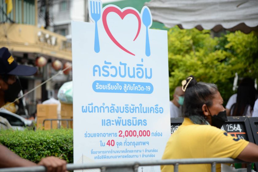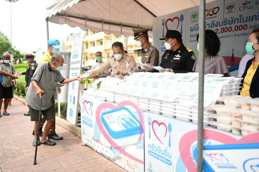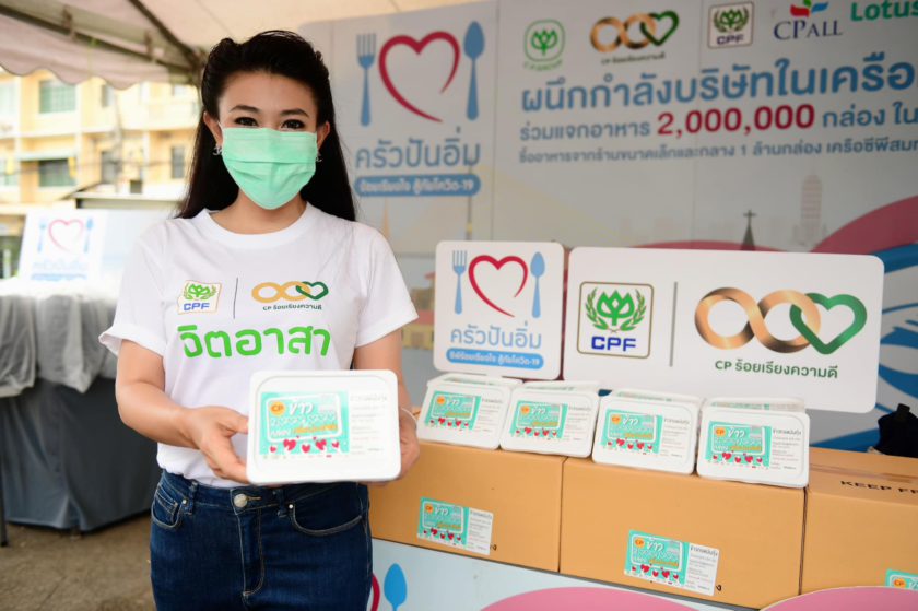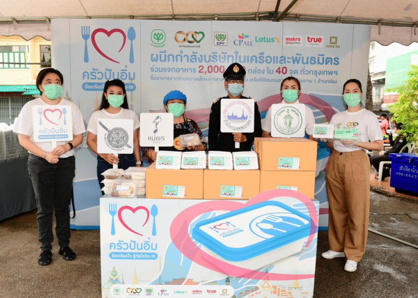 โครงการ “ครัวปันอิ่ม ซีพีร้อยเรียงใจสู้ภัยโควิด-19” เป็นการผนึกกำลังของเครือ CP-CPF ร่วมกับพันธมิตรกว่า 100 องค์กร ส่งมอบข้าวกล่องอุ่นร้อนพร้อมทาน 2 ล้านกล่อง ประกอบด้วย 1 ล้านกล่องแรกซื้อจากร้านอาหารรายย่อย และอีก 1 ล้านกล่องมาจาก CPF เป็นอาหารที่ปรุงใหม่ สุก สะอาด ถูกสุขอนามัย มีเมนูอาหารที่หลากหลาย โดยเครือข่ายจิตอาสา มูลนิธิ และหน่วยงานพันธมิตร จะรับอาหารไปกระจายสู่ชุมชนทั่วกรุงเทพฯ และปริมณฑล ที่ได้รับผลกระทบจากโควิด-19 เพื่อช่วยบรรเทาความเดือดร้อนแก่ผู้ที่ขาดรายได้ ว่างงาน กลุ่มเปราะบาง กลุ่มที่กักตัวดูอาการ และผู้ที่รักษาตัวที่บ้านหรือ Home Isolation ตลอดจนช่วยอุดหนุนธุรกิจร้านอาหารรายย่อยให้มีรายได้ในสถานการณ์เช่นนี้