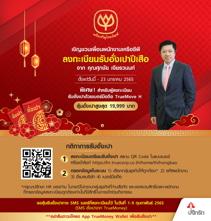 1. ลงทะเบียนเตรียมรับอั่งเปา เพียงสแกน QR Code ในแบนเนอร์ หรือเข้าลิงก์ https://hr.truecorp.co.th/home/th/hongbao