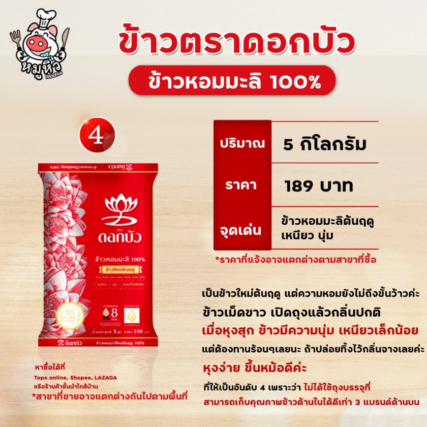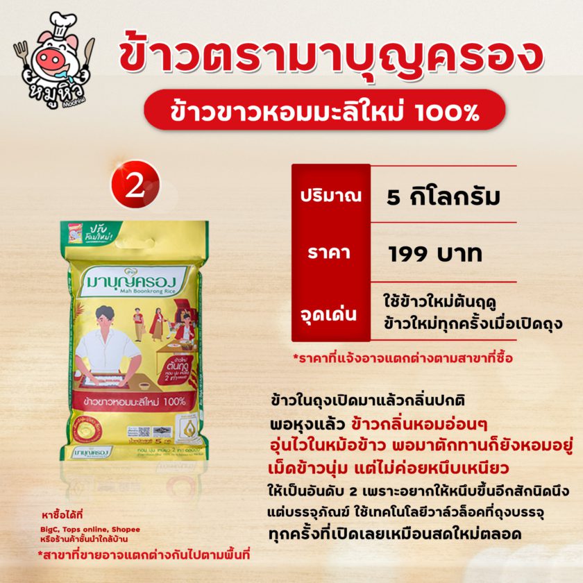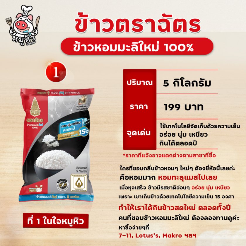 **ขอบอกว่าเป็นความเห็นของเจ๊หมูนะคะ ถ้าอยากรู้ว่าอร่อยตามนี้จริงมั้ย ต้องลองซื้อมาทานกันดูค่ะ ส่วนใครที่กำลังอินข้าวหอมมะลิใหม่ยี่ห้อไหนอยู่ คอมเม้นต์บอกกันได้เลยนะ แนะนำเจ๊หมูด้วยนะค้า