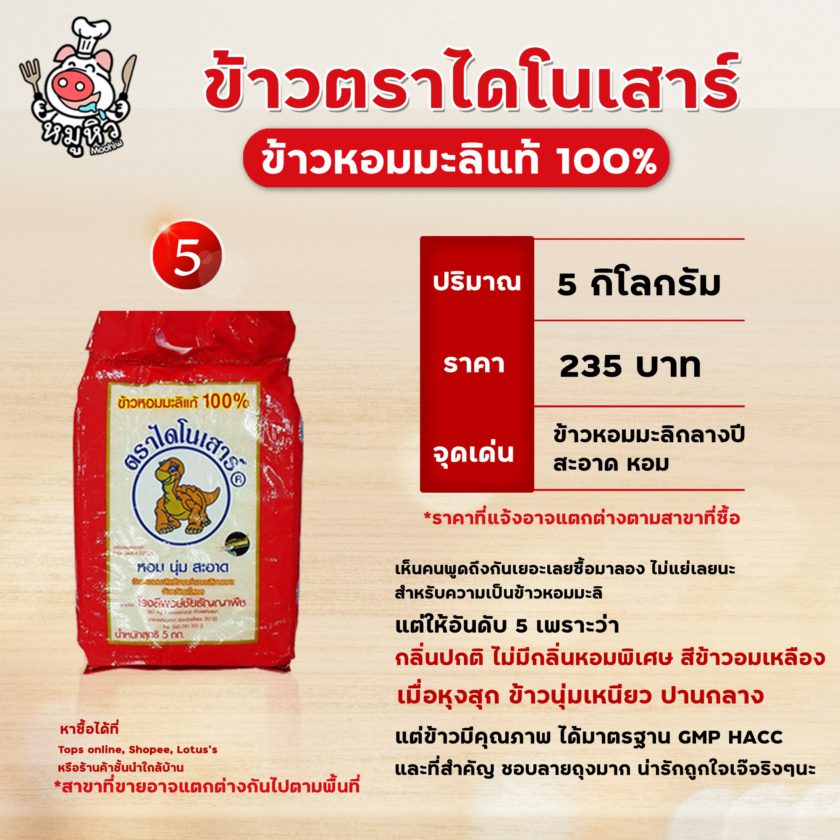 ปัญหาโลกแตกของเจ๊หมูเหมือนกัน กว่าจะได้ข้าวหอมมะลิใหม่ที่หุงแล้วถูกใจเรียกว่า ลองมาเยอะ! เจ็บมาเยอะค่ะ! เท่าที่ลองมาก็มีประมาณ 5 ยี่ห้อนี้ค่ะ ที่เจ๊หมูว่าดีขึ้นแท่น จนต้องยกมารีวิวกัน
