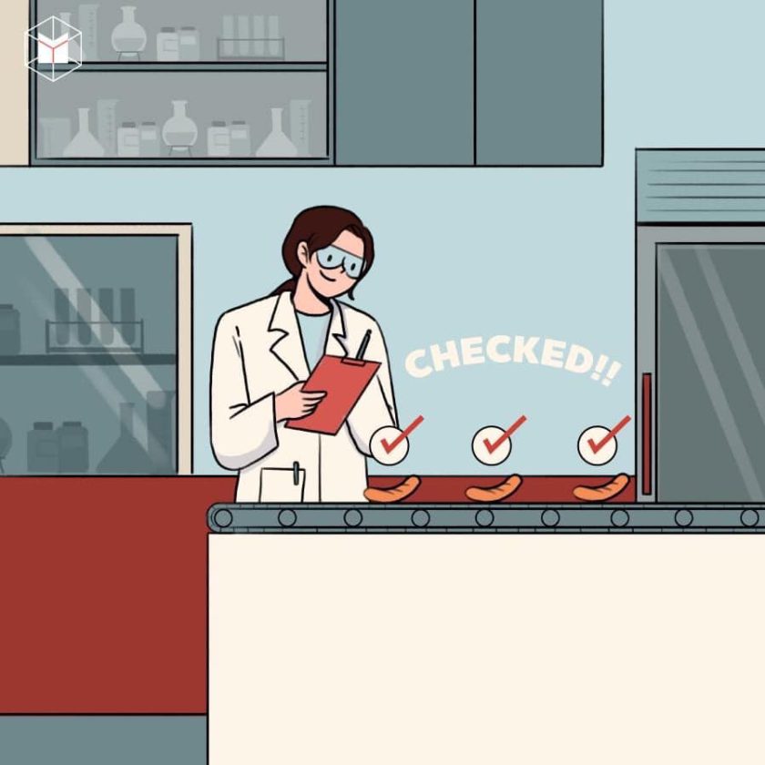 อีกหนึ่งกระบวนที่สำคัญไม่แพ้กันก็คือการตรวจสอบคุณภาพ โดยตรวจเช็กโลหะต่อกับเครื่องจักรเพื่อป้องกันสิ่งปนเปื้อนที่อาจหลุดรอดมาได้ หมดความเสี่ยงแม้เพียงเศษโลหะชิ้นเล็กจิ๋ว ก่อนจะส่งเข้าห้องเก็บคลังสินค้า และขนส่งสู่ท้องตลาดต่อไป