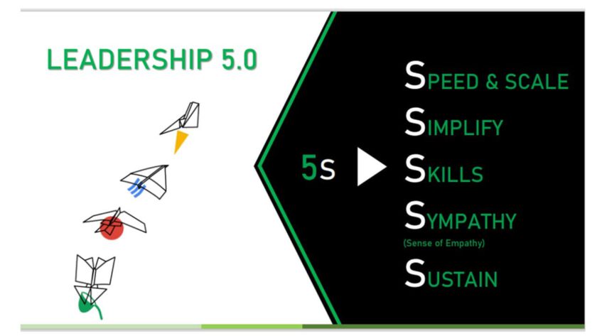 สำหรับบทบาทความเป็นผู้นำยุค 5.0 หรือ Leadership 5.0 นั้น ควรประกอบด้วย 5S ได้แก่