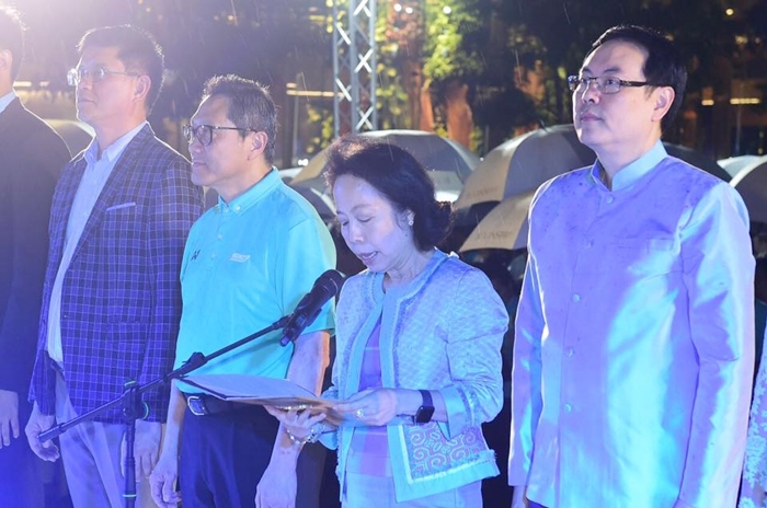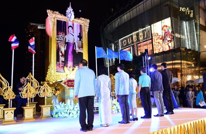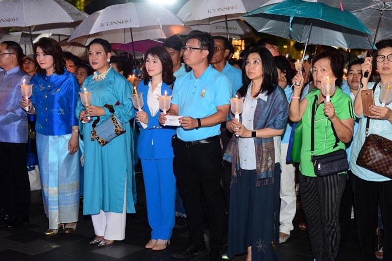 โดยมี คุณพาสินี ลิ่มอติบูลย์ ประธานกรรมการ บริษัท ไอคอนสยาม จำกัด กล่าวถวายราชสดุดีและนำกล่าวถวายพระพร นำร้องเพลงสรรเสริญพระบารมี โดยมีพสกนิกรทุกหมู่เหล่าจุดเทียนชัยถวายพระพร สมเด็จพระนางเจ้าสิริกิติ์ พระบรมราชินีนาถ พระบรมราชชนนีพันปีหลวง ด้วยเทียนสีฟ้า ต่างเปร่งเสียงร้องเพลงโดยพร้อมเพรียงกันและถวายพระพรทรงพระเจริญดังกึกก้องไปทั่วลานริเวอร์พาร์ค ไอคอนสยาม