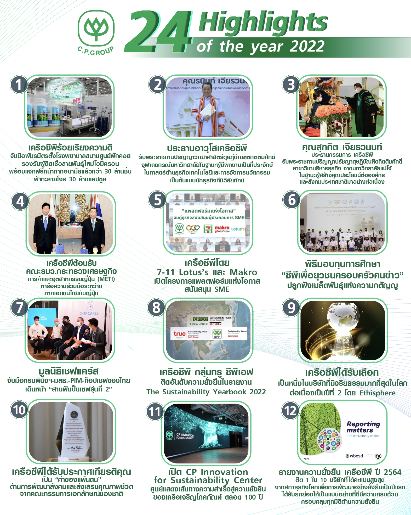24 เหตุการณ์สำคัญของเครือเจริญโภคภัณฑ์ ปี 2022 6 มกราคม 2566SystemNews, ข่าวสังคม, ข่าวเด่น Post Views: 2,791