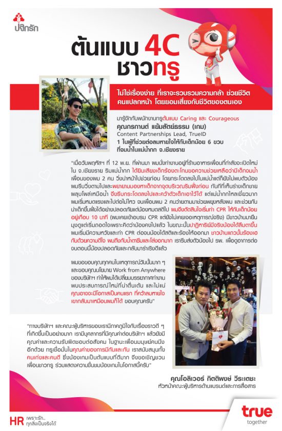 ต้นแบบ 4C ชาวทรู: ไม่ใช่เรื่องง่าย ที่เราจะรวบรวมความกล้า ช่วยชีวิตคนแปลกหน้า โดยยอมเสี่ยงกับชีวิตของตนเอง