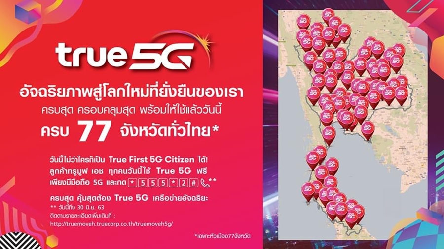 วันนี้ True5G เครือข่ายอัจฉริยะ ครบสุด ครอบคลุมสุด พร้อมใช้ได้แล้วทุกภาค ครบ 77 จังหวัด