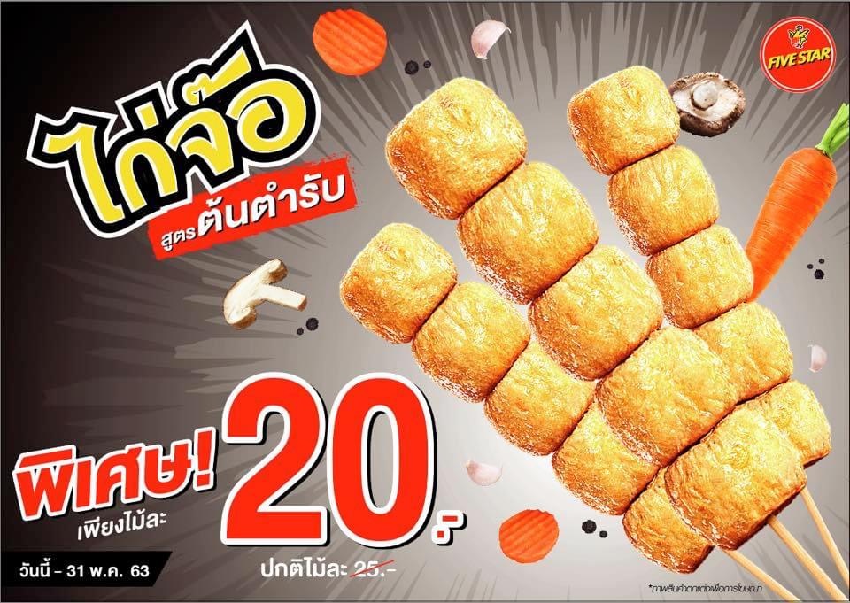 ? ไก่จ๊อห้าดาว เหลือ 20 บาท จากปกติไม้ละ 25 บาท