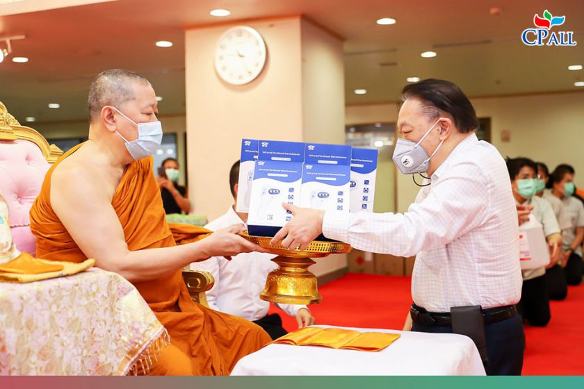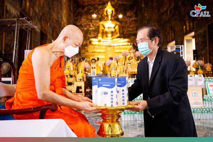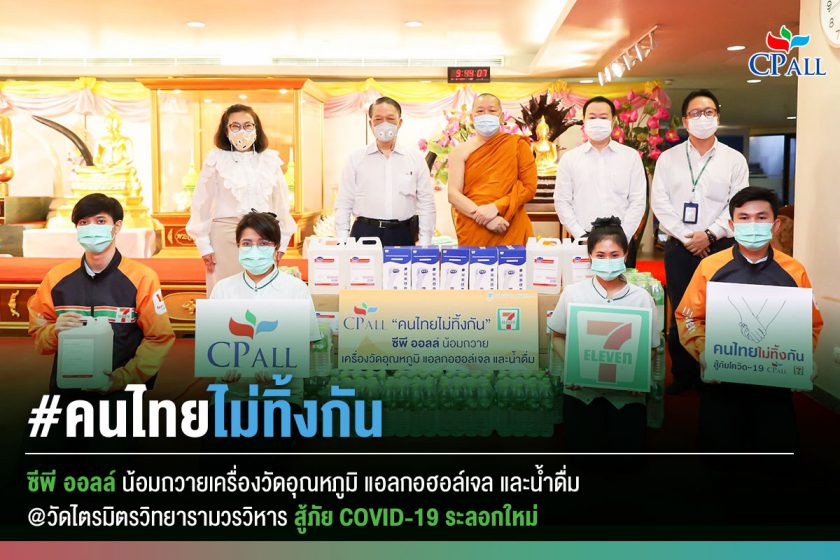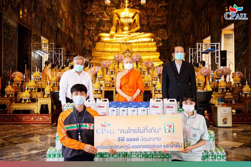 โดยในวันนี้ได้น้อมถวายแอลกอฮอล์เจล-เครื่องวัดอุณหภูมิ-น้ำดื่ม ให้กับวัดไตรมิตรวิทยารามวรวิหาร โดยมีเจ้าประคุณสมเด็จพระมหารัชมงคลมุนี ผู้ช่วยเจ้าอาวาสวัดไตรมิตรฯ กรรมการมหาเถรสมาคม รับถวายจากนายก่อศักดิ์ ไชยรัศมีศักดิ์ ประธานกรรมการบริหาร บมจ.ซีพี ออลล์ พร้อมด้วยคณะผู้บริหาร