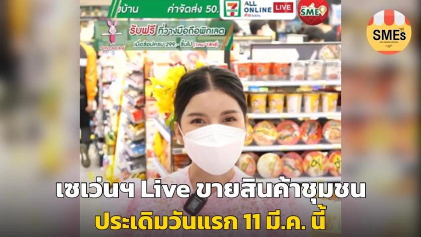 พร้อมพบกับกิจกรรม Live สินค้า SME ผ่านเฟซบุ๊ก 7-ElevenThailand ได้ในวันที่ 11 มีนาคม 2565 เวลา 12.30-14.00 น. และสามารถติดตามความเคลื่อนไหว Live จำหน่ายสินค้าราคาพิเศษได้ที่เฟซบุ๊ก 7-ElevenThailand