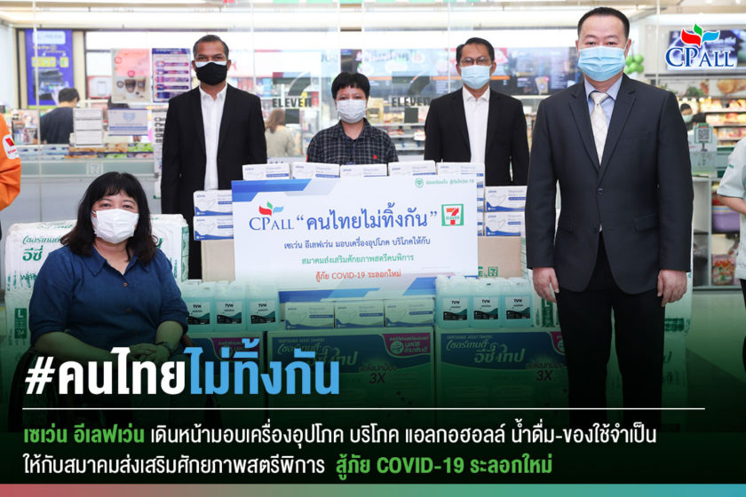 เซเว่น อีเลฟเว่น เล็งเห็นถึงความจำเป็นเร่งด่วนและเดินหน้าช่วยเหลือกลุ่มเปราะบางและภาคประชาสังคมมาอย่างต่อเนื่อง มอบเครื่องอุปโภค บริโภค แอลกอฮอลล์ น้ำดื่ม-ของใช้จำเป็นสำหรับชีวิตประจำวัน ให้สมาคมส่งเสริมศักยภาพสตรีพิการ ซึ่งเป็นอีกหนึ่งองค์กรพัฒนาเอกชนที่ทำงานส่งเสริมศักยภาพ และคุ้มครองสิทธิ์ผู้พิการในประเทศไทย เพื่อผลักดันสวัสดิการและการคุ้มครองผู้พิการโดยเฉพาะกลุ่มสตรีและเด็กเพื่อเป็นส่วนหนึ่งในการบรรเทาความเดือดร้อน ให้แก่ผู้พิการที่ได้รับผลกระทบจากไวรัสโควิด-19 โดยเฉพาะกลุ่มสตรีและเด็ก