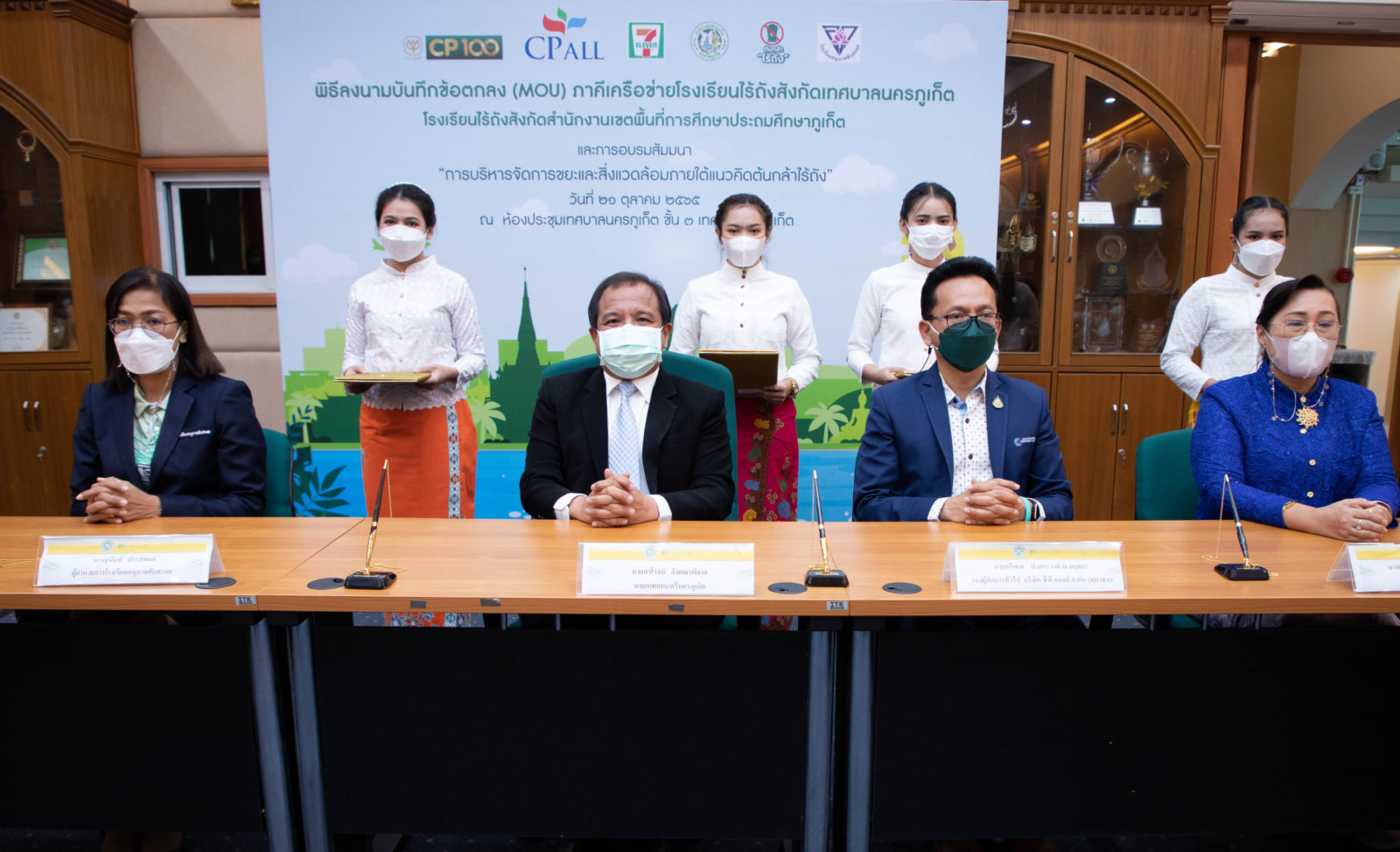 ณ เทศบาลนครภูเก็ต คุณสาโรจน์ อังคณาพิลาส นายกเทศมนตรีนครภูเก็ต ลงนามความร่วมมือภาคีเครือข่ ายโรงเรียนไร้ถัง ร่วมกับคุณตรีเทพ ปาลกะวงศ์ ณ อยุธยา รองผู้จัดการทั่วไป บริษัท ซีพี ออลล์ จำกัด (มหาชน) โดยมีตัวแทนกลุ่มโรงเรียนในสั งกัดเทศบาล 7 โรงเรียน พร้อมกับโรงเรียนในสังกัดสำนั กงานเขตพื้นที่การศึกษาประถมศึ กษาภูเก็ต เป็นการนำร่องอีก 10 โรงเรียน เข้าร่วมเป็นสมาชิก “ภาคีเครือข่ายโรงเรียนไร้ถัง” เพื่อร่วมกับองค์กรภาคเอกชนกว่า 10 แห่ง ปลูกฝังให้เกิดการคัดแยกขยะตั้ งแต่ต้นทางให้กับเยาวชนและชุมชน เพื่อแก้ปัญหาการจัดการขยะอย่ างเป็นรูปธรรม
