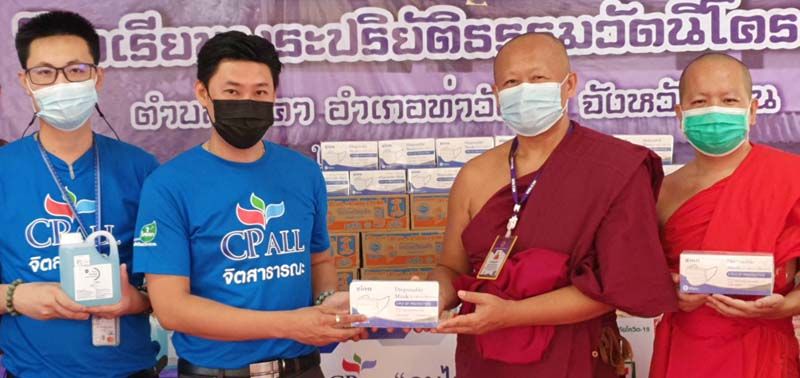 ล่าสุด คุณสมชาย ยุทธถาวรสิทธิ์ ผู้จัดการเขต บมจ. ซีพี ออลล์ พร้อมด้วยพนักงานและจิตสาธารณะซีพี ออลล์ ส่งมอบ เบเกอร์รี่ 1,000 ชิ้น, แอลกอฮอลล์ 300 ลิตร หน้ากากอนามัย 400 กล่อง และนม 35 ลัง เครื่องอุปโภค บริโภค ที่จำเป็นสำหรับชีวิตประจำวัน ให้กับ พระครูอนุกูลนันทกิจ (คงศิลป์ เขื่อนอ้น) ผู้อำนวยการโรงเรียนวัดนิโครธาราม อ.ท่าวังผา จ.น่าน เพื่อนำไปมอบให้กับโรงเรียนพระปริยัติธรรม 7 แห่งในพื้นที่ จ. น่าน ได้แก่ โรงเรียนพระปริยัติธรรมวัดนิโครธาราม อ.ท่าวังผา, โรงเรียนพระปริยัติธรรมวัดน้ำไคร้นันทชัยศึกษา อ.ท่าวังผา, โรงเรียนพระปริยัติธรรมวัดนาราบ อ.นาน้อย, โรงเรียนพระปริยัติธรรมวัดดอนมงคลสันติสุขวิทยา อ.สันติสุข, โรงเรียนพระปริยัติศาสนาภิพัฒน์วัดเมืองราม อ.เวียงสา, โรงเรียนพระปริยัติธรรมวัดบ่อหลวงวิทยาธรรม อ.บ่อเกลือ และ โรงเรียนพระปริยัติธรรมมานุสรณ์วัดฟ้าสวรรค์ อ.บ้านหลวง เพื่อบรรเทาความเดือดร้อนและป้องกันการแพร่ระบาดของไวรัสโควิด-19 ต่อไป