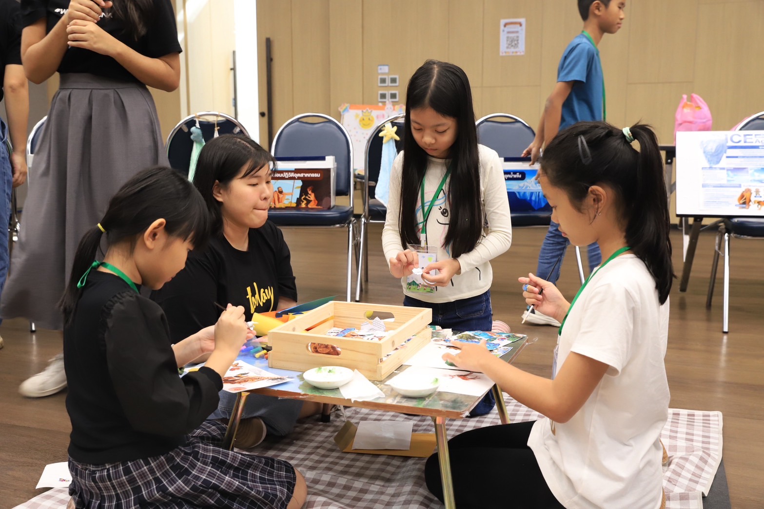- ฐาน 7 ART : สร้างสรรค์พัดจากดินเบาและลังกระดาษรีไซเคิล ให้น้อง ๆ ออกแบบพัดจิ๋ว จากลังกระดาษรีไซเคิล และ ตกแต่งด้วยดินเบาหลากหลายสี พร้อมสร้างความสนุกด้วยไฟแบล็คไลท์