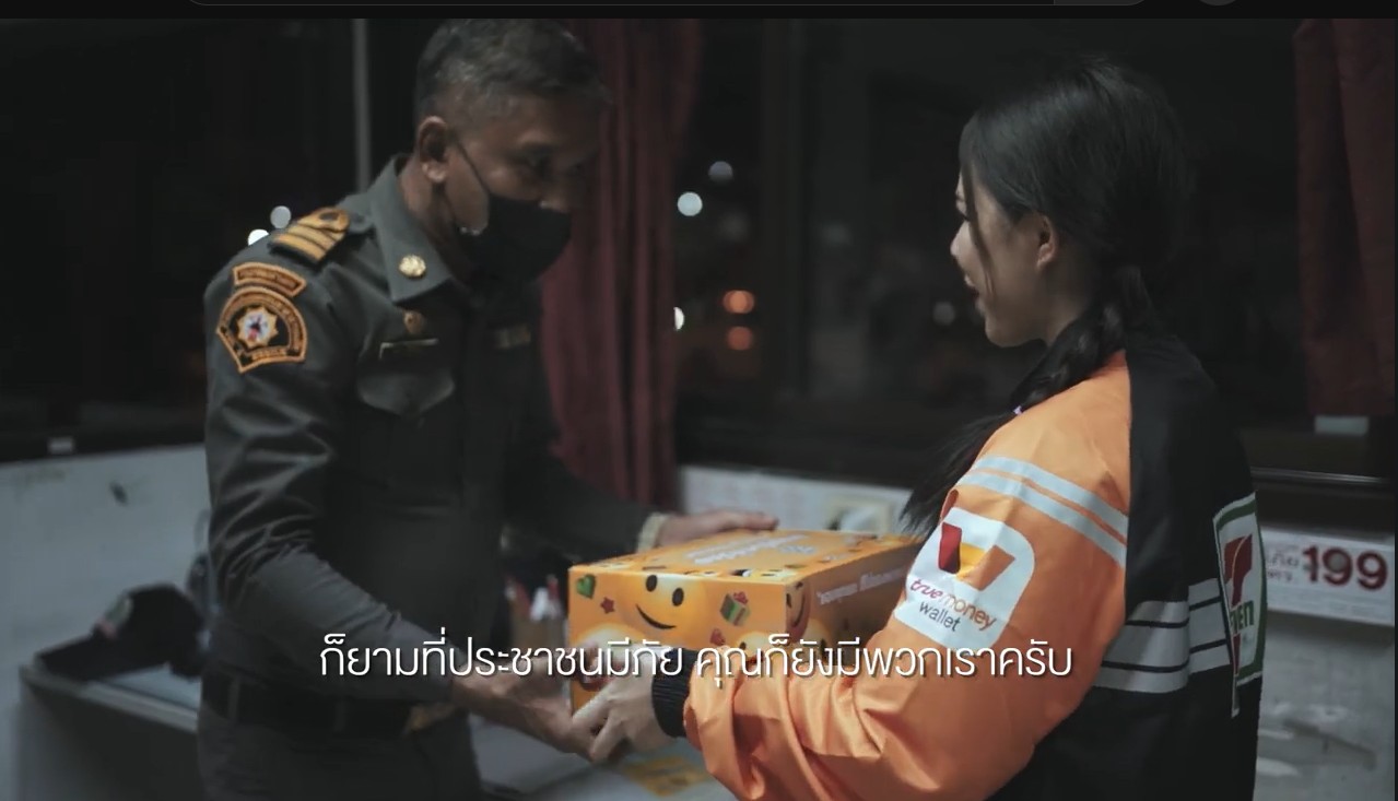 เซเว่น อีเลฟเว่น และ เซเว่น เดลิเวอรี่ ขอชื่นชมในความเสียสละของเจ้าหน้าที่ผู้อยู่เบื้องหลังทุกท่าน และขอเป็นส่วนหนึ่งในการส่งมอบคำ “ขอบคุณ” ผ่านคลิปวีดีโอ ให้กับเจ้าหน้าที่ที่ยังคงทำงานในช่วงวันหยุด “ปีใหม่นี้ ยังมี ฮีโร่อีกมากมาย ที่เราเองก็ร่วมแบ่งปันความสุขได้ มาร่วมแบ่งปันความสุขร่วมกัน”
