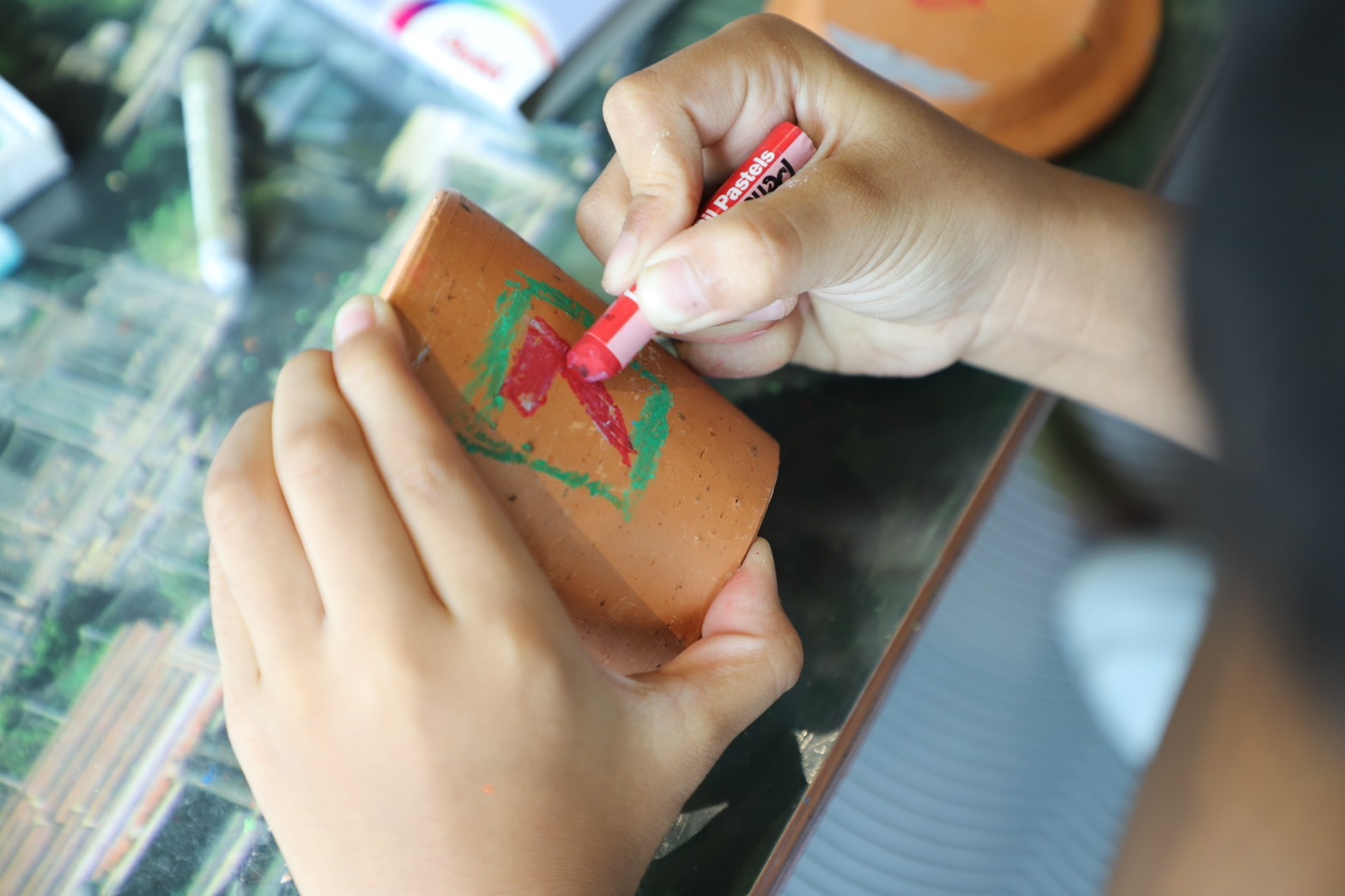ฐานที่ 2: 7 Go Green ฐานส่งเสริมแนวคิดรักษ์สิ่งแวดล้อม ผ่านกิจกรรมเพ้นท์กระถางและปลูกต้นไม้
