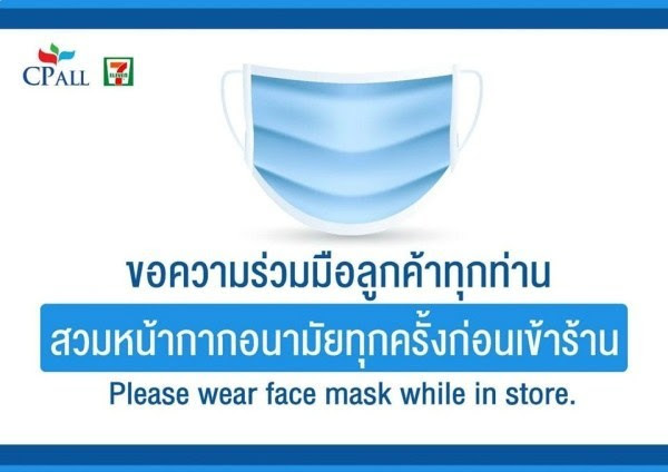 7-Eleven ติดประกาศหน้าร้านทุกสาขาขอความร่วมมือให้ลูกค้าสวมหน้ากากก่อนเข้าใช้บริการภายในร้าน