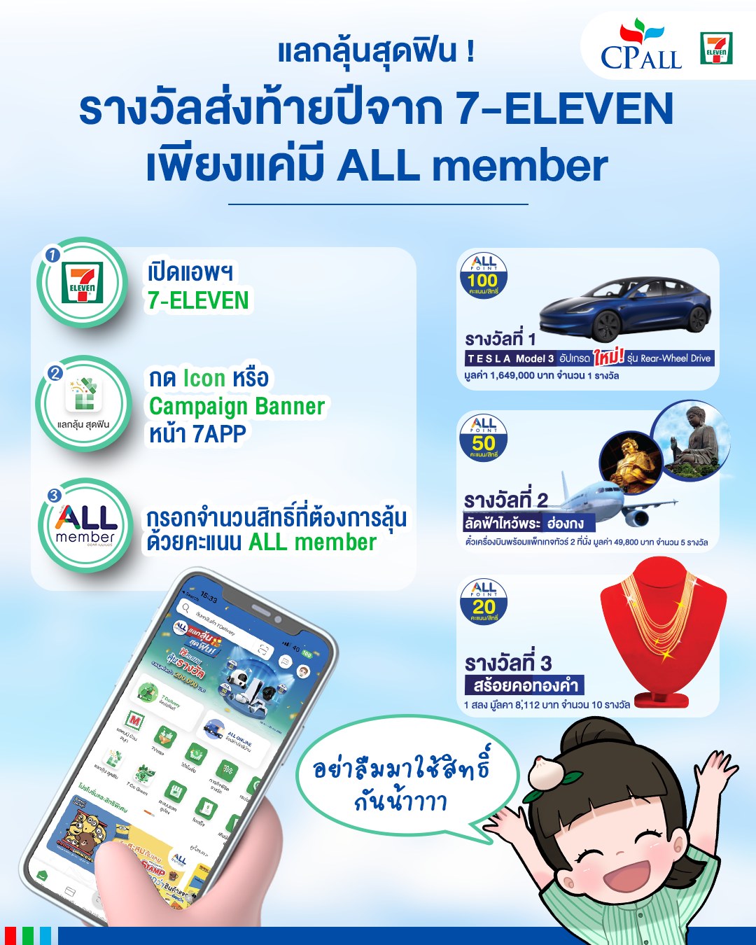 เซเว่น อีเลฟเว่น ขอขอบคุณสมาชิก ALL member ส่งท้ายปีกับกิจกรรม ‘แลกลุ้นสุดฟิน’ เพียงแค่มี ALL member ก็สามารถรับสิทธิ์ลุ้นรับของรางวัลกันได้เลย