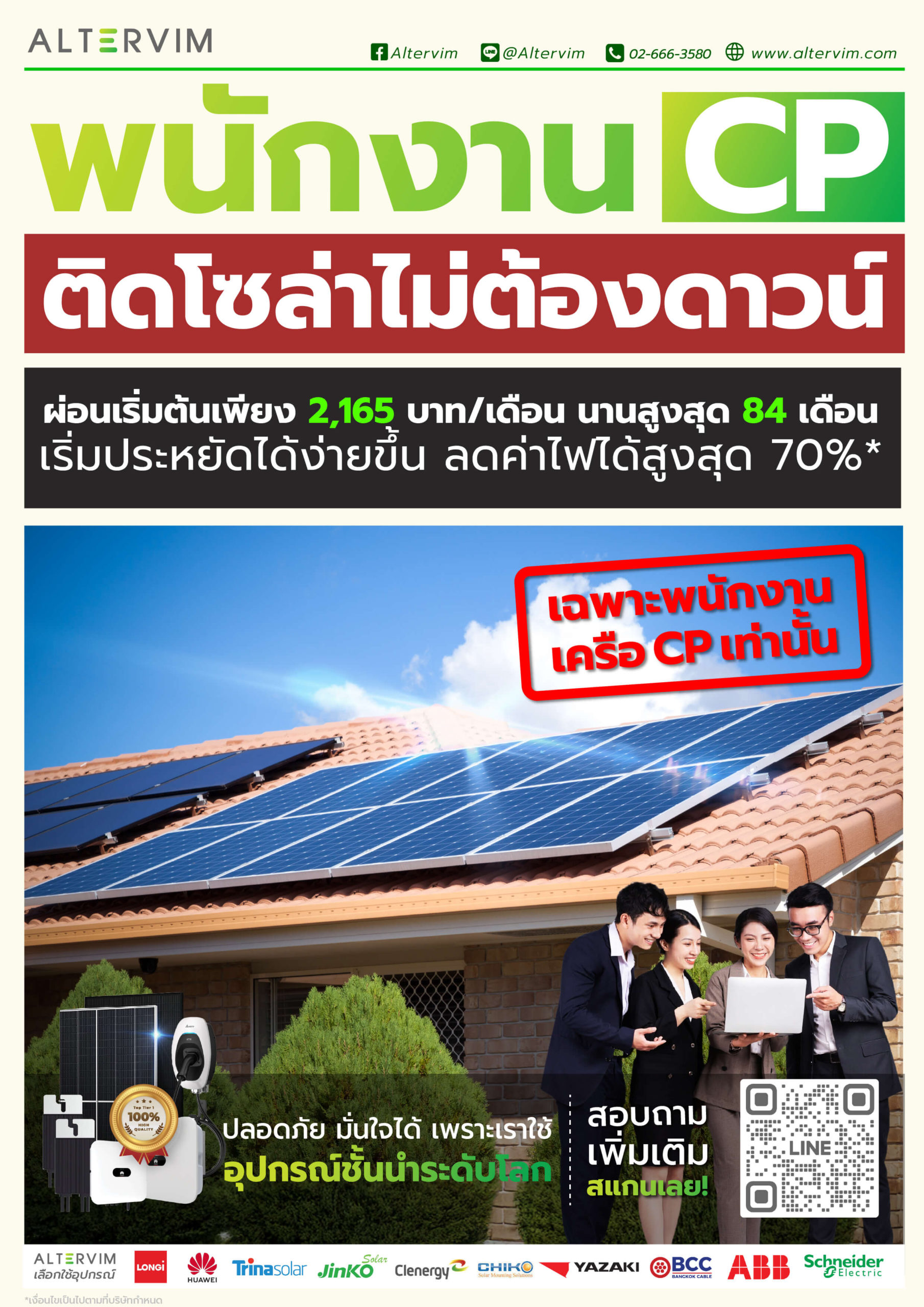 มาเปลี่ยนบ้านของคุณให้เป็นมิตรกับสิ่งแวดล้อม ด้วยพลังงานสะอาดจากโซล่าเซลล์ ที่ช่วยทั้งลดค่าไฟและลดการปล่อยคาร์บอน สิทธิพิเศษเฉพาะพนักงานเครือ CP!