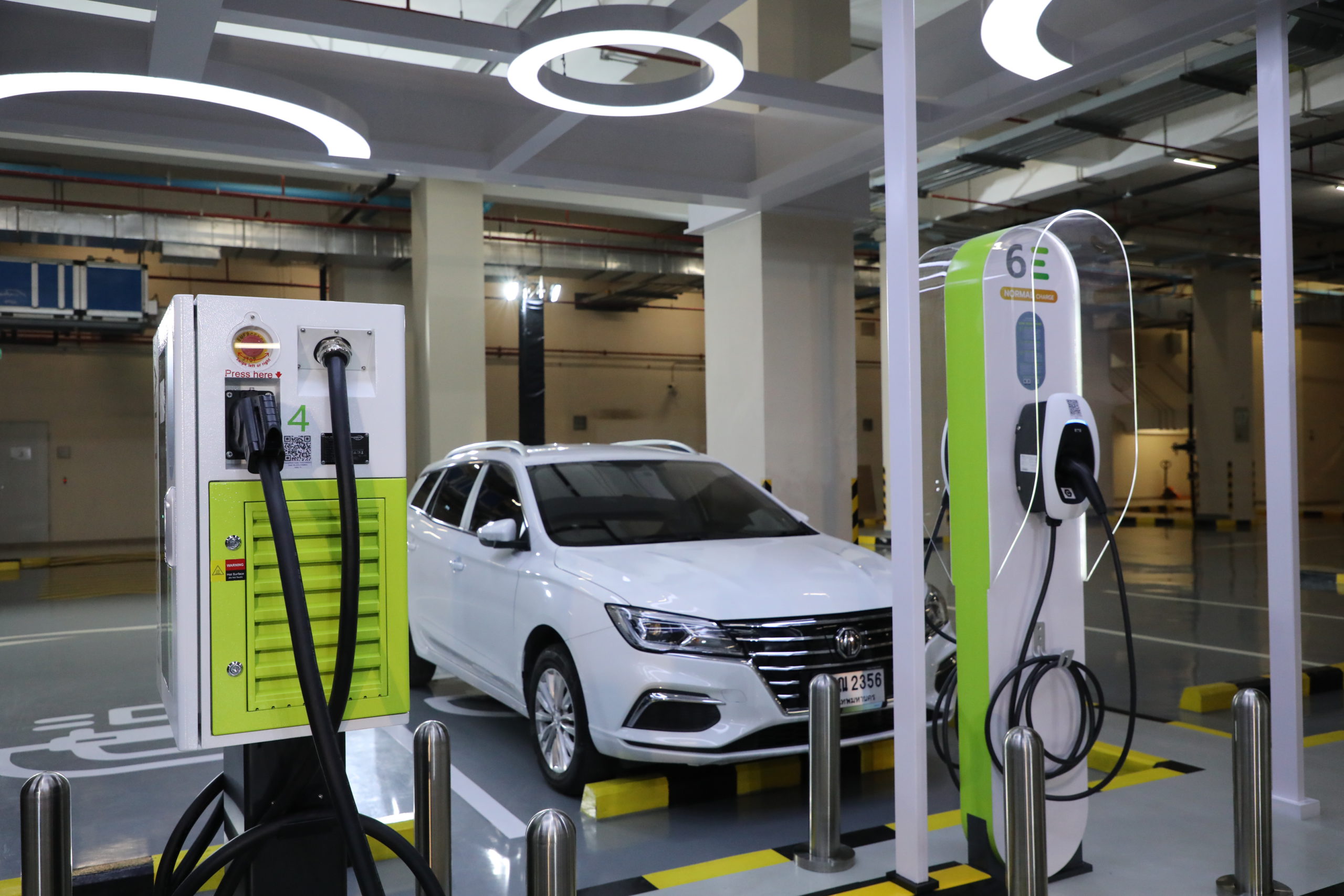 2. สถานีอัดประจุยานยนต์ไฟฟ้า สำหรับยานยนต์ไฟฟ้า โดยในช่วงเริ่มต้นเรามีการติดตั้งเครื่องชาร์จแบบที่เหมาะกับการใช้งานของสถาบันผู้นำเครือเจริญโภคภัณฑ์ คิดเป็นประมาณ 7% ของจำนวนช่องจอดทั้งหมดภายในอาคาร และมีแผนในการติดตั้งเพิ่มเติมตามสัดส่วนการใช้งานยานยนตร์ไฟฟ้าที่มากขึ้นในปีหน้า โดยนี่ถือเป็นสถานีอัดประจุไฟฟ้าลำดับที่ 101 หลังจากที่ทางอัมเตอร์วิมได้เปิดสถานีในโลตัสไฮเปอร์มาร์เก็ตไปแล้ว 100 สาขา ทั้งในกรุงเทพมหานครและหัวเมืองท่องเที่ยว เชื่อมต่อการเดินทางด้วยยานยนต์ไฟฟ้าทั่วประเทศ