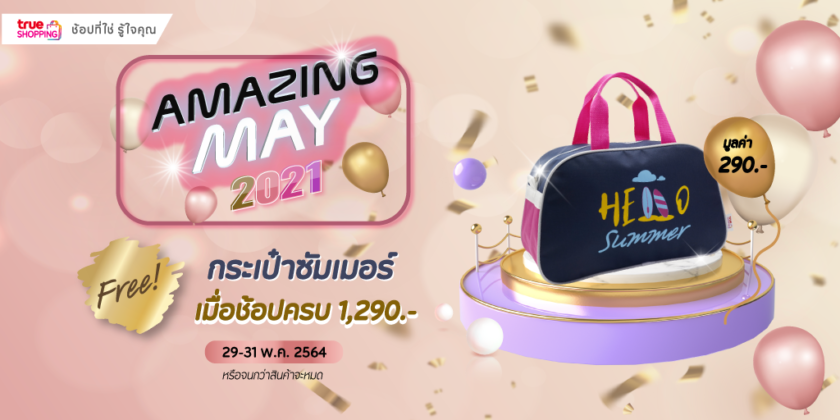 ส่งตรงความคุ้มถึงหน้าบ้าน Amazing May 2021 เพียงช้อปสินค้ากับทรูช้อปปิ้งครบ 1,290.- รับฟรี! กระเป๋าซัมเมอร์สีสันสดใส มูลค่า 290.-