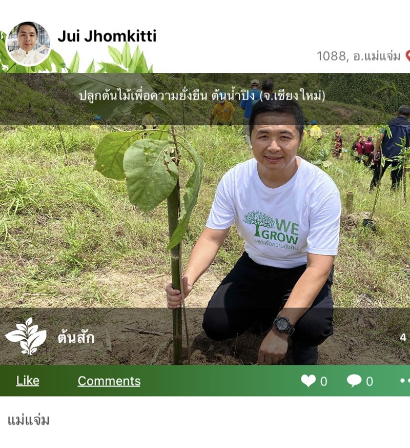 ล่าสุดเครือเจริญโภคภัณฑ์ ได้จัดแคมเปญ “WE GROW ปลูกเพื่อความยั่งยืน“ ปลูกต้นไม้ ปิง วัง ยม น่าน ชวนพนักงาน CP และพันธมิตร ปลูกต้นไม้ผ่านแอปพลิเคชั่น We Grow เครื่องมือสนับสนุนการปลูกต้นไม้ในสังคมยุคใหม่ ให้ความสำคัญด้านสิ่งแวดล้อมและป่าไม้ โดยตั้งเป้าการปลูกต้นไม้ 100,000 ต้นในปีนี้