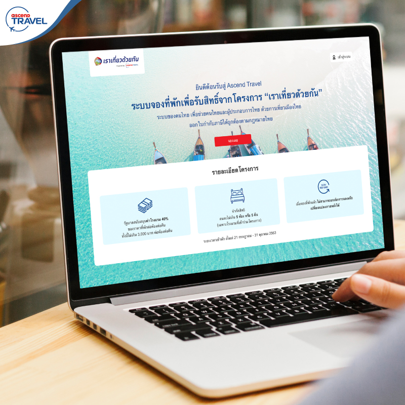 จากที่การท่องเที่ยวแห่งประเทศไทย (ททท.) และรัฐบาลได้จัดทำโครงการ “เราเที่ยวด้วยกัน” เพื่อเป็นการส่งเสริมการท่องเที่ยวภายในประเทศหลังได้รับผลกระทบจากโรคโควิด-19 โดยที่รัฐบาลจะสนับสนุนค่าโรงแรมที่พัก 40% ของราคาที่พักต่อคืน โดยไม่เกิน 3,000 บาท ต่อห้องต่อคืน ทางบริษัท แอสเซนด์ แทรเวิล กิจการในAscend Group เครือซีพี ได้รับเลือกให้เป็น 1 ในช่องทางการจองห้องพัก Online ของโครงการ
