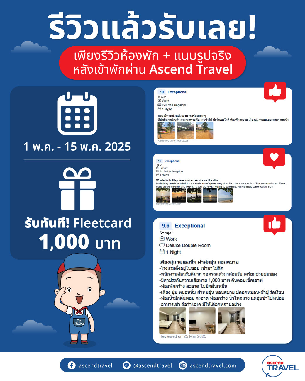 รีวิวของคุณมีค่า! พักกับ Ascend Travel แล้วอย่าลืมมารีวิวกันนะ