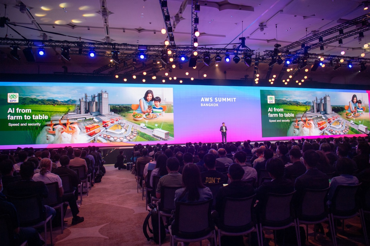 ในงานเดียวกัน คุณสรรเสริญ ยังได้ร่วมแบ่งปันการประยุกต์ใช้เทคโนโลยีดิจิทัลขององค์กร ในภายใต้หัวข้อ “CP Group + AWS: Powering Transformation at Scale” ในการเปลี่ยนผ่านสู่องค์กรดิจิทัล โดยวิสัยทัศน์ด้านเทคโนโลยีของเครือซีพีในวันนี้ คือการนำ AI เข้ามาช่วยปรับปรุงประสิทธิภาพในทุกขั้นตอน ตั้งแต่การดำเนินงานเบื้องหลัง การตัดสินใจ ไปจนถึงการกำกับดูแล ซึ่ง AWS มีบทบาทสำคัญในการเดินทางครั้งนี้ โดยยกกรณีศึกษาของ ซีพีเอฟ ที่นำเทคโนโลยี AI และ Cloud เข้ามายกระดับห่วงโซ่การผลิตอาหาร “ฟาร์มถึงโต๊ะอาหาร” — ตั้งแต่การวางแผน การเลี้ยงสัตว์ การแปรรูป การขนส่ง จนถึงการวิเคราะห์ข้อมูลขนาดใหญ่แบบเรียลไทม์ เพื่อเพิ่มประสิทธิภาพและความปลอดภัยของอาหารในทุกขั้นตอน