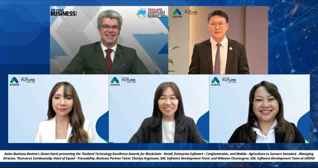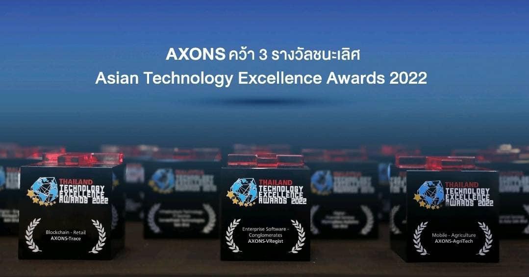 แอ๊กซอน (AXONS) สร้างปรากฏการณ์ด้านเทคโนโลยีเกษตรอุตสาหกรรมและอาหาร (Agri Tech) คว้า 3 รางวัลชนะเลิศจากเวทีระดับภูมิภาค “Asian Technology Excellence Awards 2022” ครอบคลุมเทคโนโลยี Mobile ในด้านอุตสาหกรรมเกษตร (Agriculture) เทคโนโลยี Enterprise Software สำหรับกลุ่มธุรกิจ (Conglomerates) และเทคโนโลยี Blockchain สำหรับอุตสาหกรรมค้าปลีก (Retail) ตอกย้ำศักยภาพด้านดิจิทัล ที่มีบทบาทสำคัญในการผลักดันให้ห่วงโซ่การผลิตอาหารของไทยประสบความสำเร็จ ก้าวสู่การเป็น “ครัวของโลก” ได้อย่างยั่งยืน