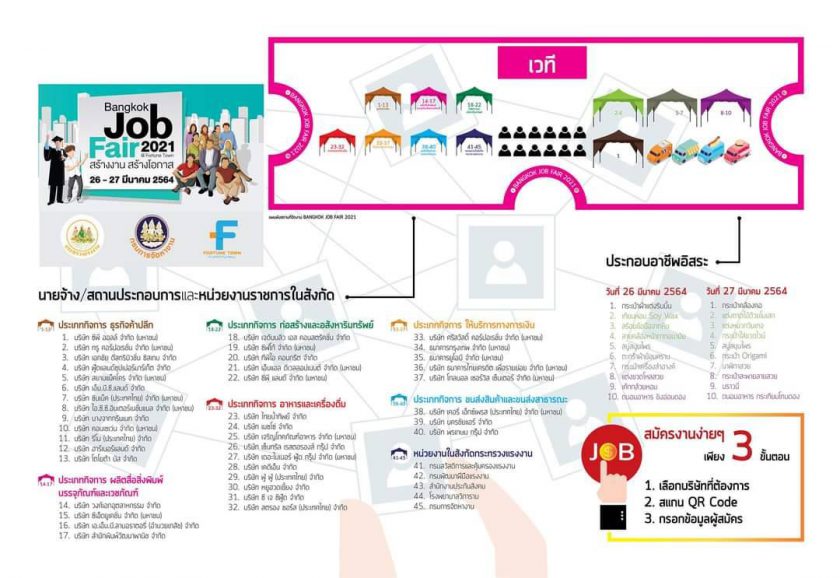 Bangkok Job Fair 2021 @ Fortune Town วันนี้ 26 – 27 มีนาคม นี้ เวลา 09.00-16.00น. ลานฟอร์จูนสตรีท ศูนย์การค้าฟอร์จูนทาวน์ 26 มีนาคม 2564SystemNews, กิจกรรมเพื่อสังคม เปิดรายชื่อบริษัท พร้อมตำแหน่งงานว่าง Bangkok Job Fair 2021 @ Fortune Town สมัครงานง่าย ๆ แค่ 3 ขั้นตอน เลือกบริษัทที่ต้องการ สแกนคิวอาร์โค้ด เลือกตำแหน่งงานและกรอกข้อมูลส่วนบุคคลแล้วกดส่ง (นายจ้าง/สถานประกอบการจะได้รับข้อมูล) ผู้สมัครงานเข้ารับการสัมภาษณ์กับนายจ้าง/สถานประกอบการได้ทันที ดูตำแหน่งงานว่าง https://bit.ly/3soymyF 26 – 27 มีนาคม นี้ 09.00-16.00น. ลานฟอร์จูนสตรีท ศูนย์การค้าฟอร์จูนทาวน์ Post Views: 1,134