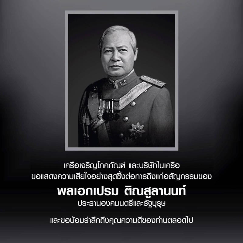 สวัสดีครับพี่น้องชาวซีพีที่รัก ท่ามกลางข่าวงานมงคลเกี่ยวกับพระราชพิธีบรมราชาภิเษกเพิ่งผ่านไปไม่กี่วัน คนไทยต้องกลับมาโศกเศร้าอีกครั้งกับการสูญเสียพลเอกเปรม ติณสูลานนท์ ประธานองคมนตรีและรัฐบุรุษเมื่อวันที่ 26 พฤษภาคม ที่ผ่านมาทำให้หลายคนสุดเสียดายเนื่องจากพลเอกเปรมที่ทุกคนคุ้นเคยกับคำว่า”ป๋าเปรม”ได้เป็นแบบอย่างที่ดีให้กับคนไทย โดยเฉพาะในเรื่องของความซื่อสัตย์สุจริต การยึดมั่นในคุณงามความดี การรู้จักตอบแทนคุณแผ่นดิน