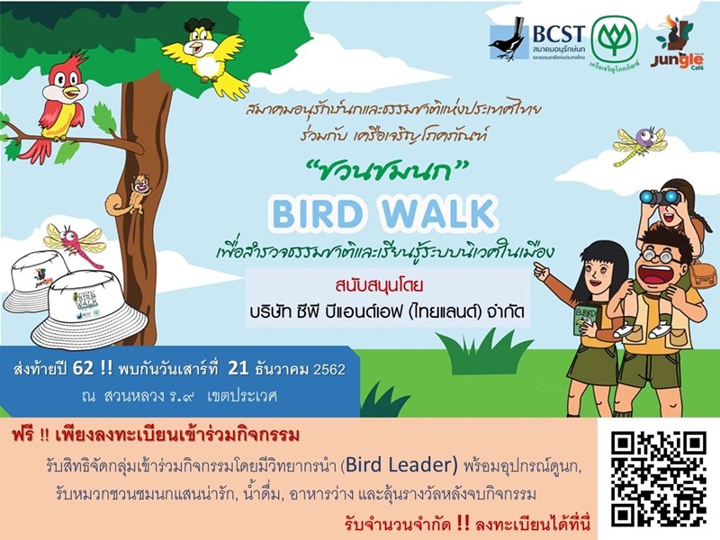 ทริปสุดท้ายส่งปีกุนนี้ !!! ชวนร่วมเดิน “ชวนชมนก Bird Walk” พบกันเสาร์ที่ 21 ธันวาคมนี้ ณ สวนหลวง ร.๙ ประเวศ …งานดี ๆ ไม่มีค่าใช้จ่าย