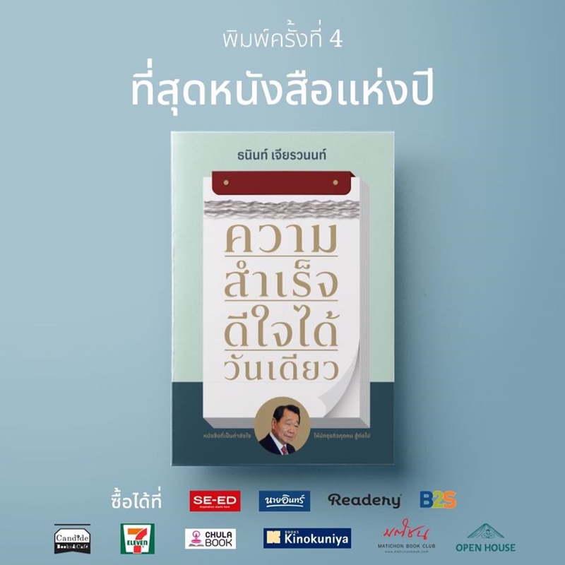 เป็นเรื่องน่าภาคภูมิใจที่หนังสือ ความสำเร็จ ดีใจได้วันเดียว ของท่านประธานอาวุโสกลายเป็นหนังสือที่ได้รับความสนใจอย่างมาก โดยสำนักพิมพ์มติชนเผยว่าจากกระแสตอบรับหนังสือ”ความสำเร็จ ดีใจได้วันเดียว”ได้สร้างปรากฏการณ์ขายดีจนขาดตลาดไปทั่วประเทศทำให้สำนักพิมพ์มติชนต้องสั่งพิมพ์ครั้งที่ 4 ตามคำเรียกร้อง หาซื้อได้ที่ร้านหนังสือชั้นนำ…