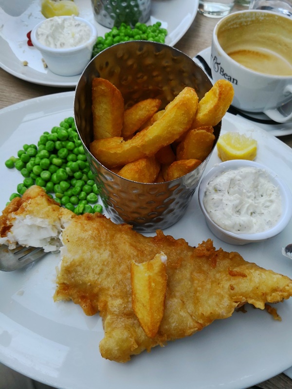 ผมกลับมีแรงอีกครั้ง ร่างกายและสมองทำงานพร้อมกันว่าออกไปข้างนอกดีกว่า เวลามีน้อย อากาศดีเช่นนี้ในอังกฤษหายากนัก ผมจึงรีบวางของและออกไปเดินเล่นภายในเมืองทันที และแน่นอนต้องเติมพลังด้วย Fish & Chips เมนูสิ้นคิดของที่นี่ แต่มันช่างเหมาะสมกับเมืองนี้ และเวลานี้มาก ๆ เพราะเมือง Brixham เป็นเมืองของชาวประมง เป็นเมืองที่มีบรรยากาศของความภาคภูมิใจในความเป็นเมืองประมงเป็นอย่างมาก ที่เราจะเห็นได้จากการตั้งชื่อร้านรวง การแต่งบ้านเมือง ทุกอย่างจะมีเรื่องราวเกี่ยวกับการเดินเรือและประมงเสมอ