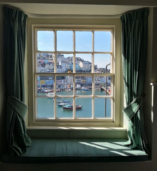 ผมมาถึงที่เมืองนี้ช่วงบ่าย ๆ เดินทางมาจากกรุงเทพฯ ตรงมา London แล้วต่อรถมาที่เมืองนี้โดยไม่ได้แวะพักที่ไหนเลย สภาพเมื่อมาถึงที่พักนั้นคือเหนื่อย เพลีย และหิวข้าวแบบสุด ๆ ระหว่างทางก็สลึมสลือไม่ได้ดูทางหรือวิวภายนอกรถโดยสารมากนัก พอมาถึงที่พักผมก็แบกกระเป๋าขึ้นไปยังชั้นสองครึ่ง (เนื่องจากโรงแรมเกิดจากการดัดแปลงบ้านมาต่อกัน มีบันไดที่ซับซ้อนพอควร จึงบอกไม่ได้แน่นอนว่าห้องผมอยู่ชั้นอะไรกันแน่) เปิดประตูเข้าพบกับภาพวาดที่ไม่ใช่ภาพวาด แต่มันคือวิวของเมือง Brixham ที่อวดผู้มาเยือนจากอีกมุมโลกอย่างภาคภูมิใจ ภาพของเรือหลายลำจอดเรียงรายในอ่าวใจกลางขอเมือง ท้องฟ้าตัดกับบ้านเรือนหลายสีสันเบียดกันดูอบอุ่น น้ำสีเข้มออกเขียวฟ้า นิ่งสงบ ปลอบประโลมคนมาเยือนได้ดียิ่ง