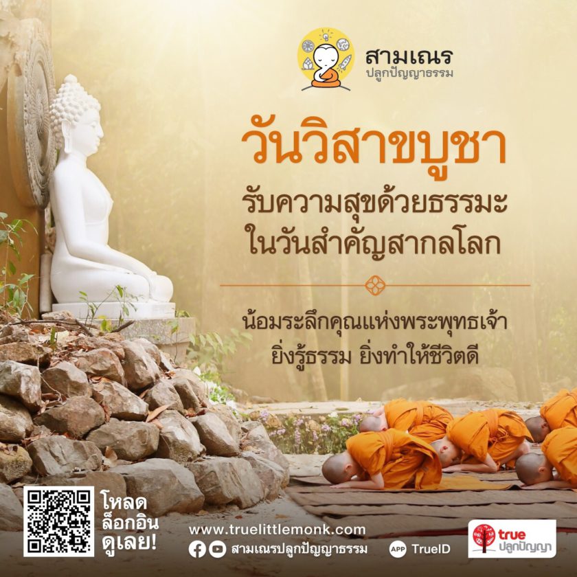 วันวิสาขบูชาโลก…น้อมระลึกคุณแห่งพระพุทธเจ้า สร้างบุญ อิ่มใจ รับความสุขด้วยธรรมะ แบบวิถีชาวพุทธ ยุคนิว นอร์มัลกับสามเณรปลูกปัญญาธรรม ผ่านแอปทรูไอดี