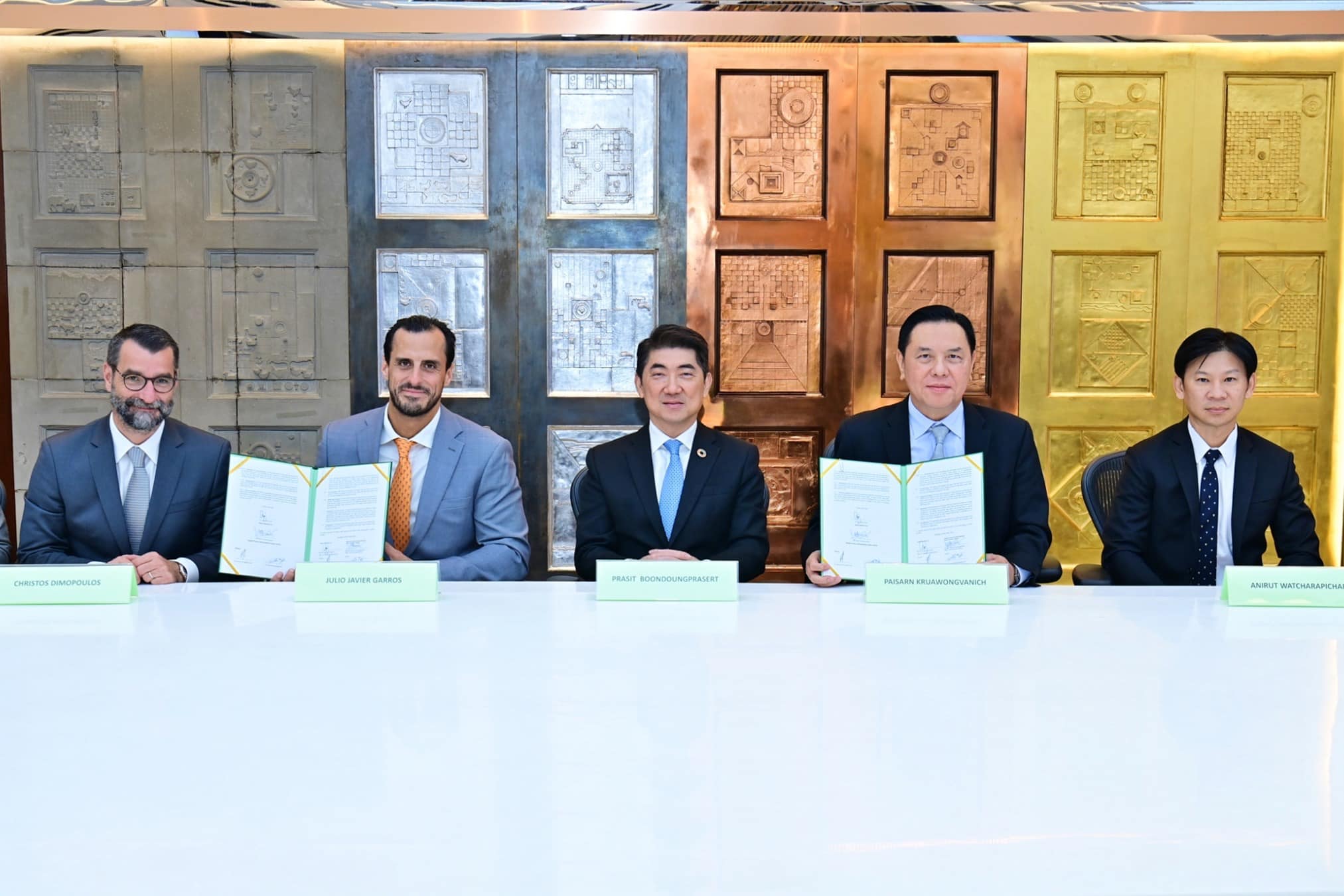 ในพิธีลงนาม คุณไพศาล เครือวงศ์วานิช ประธานเจ้าหน้าที่บริหาร กรุงเทพโปรดิ๊วส และนายฮูลิโอ จาเวียร์ การ์รอส ประธานบริหารร่วม ธุรกิจการเกษตร ประจำ เซา เปาโล บังกี้ เซ็นต์ลงนาม โดยมี คุณประสิทธิ์ บุญดวงประเสริฐ ประธานคณะผู้บริหาร ซีพีเอฟ เป็นสักขีพยาน พร้อมกับ คุณพีรพงศ์ กรินชัย ผู้บริหารสูงสุด สายงานวิศวกรรมกลาง ซีพีเอฟ และ คุณคริสโตส ดิโมพูโลส ประธานบริหารร่วม ธุรกิจการเกษตร ประจำ เจนีวา บังกี้ ณ ซีพี ทาวเวอร์ สีลม กรุงเทพ