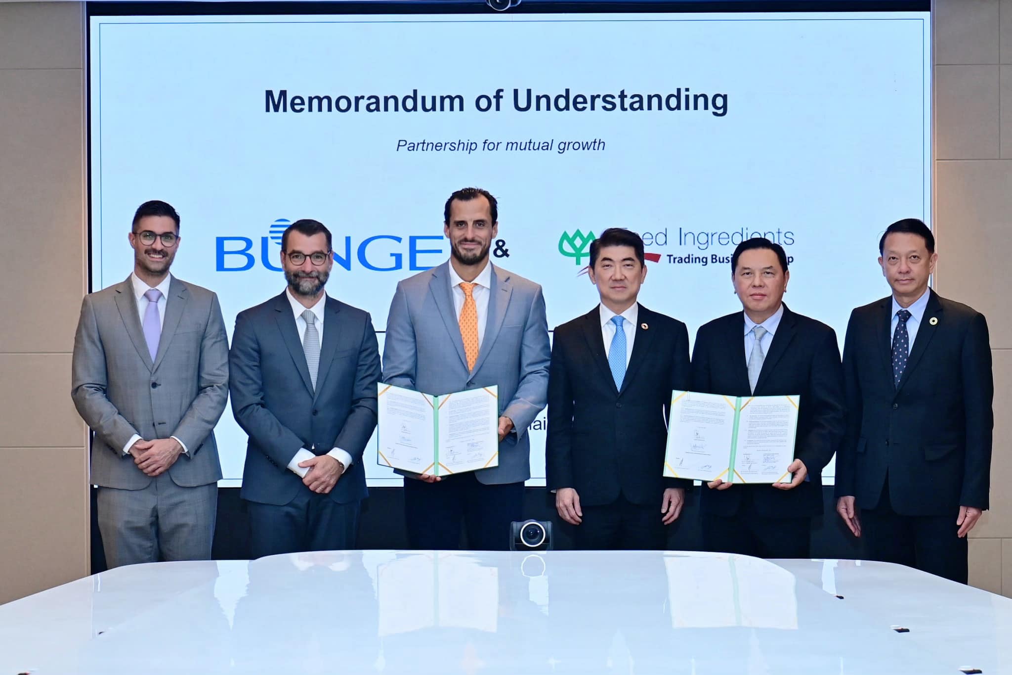 บริษัท บังกี้ จำกัด (BUNGE) และ บริษัท กรุงเทพโปรดิ๊วส จำกัด (มหาชน) ผู้จัดหาวัตถุดิบหลักอาหารสัตว์ ให้แก่ บริษัท เจริญโภคภัณฑ์อาหาร จำกัด (มหาชน) หรือ ซีพีเอฟ ลงนามในบันทึกความเข้าใจ (MoU) บูรณาการร่วมกันพัฒนาและเชื่