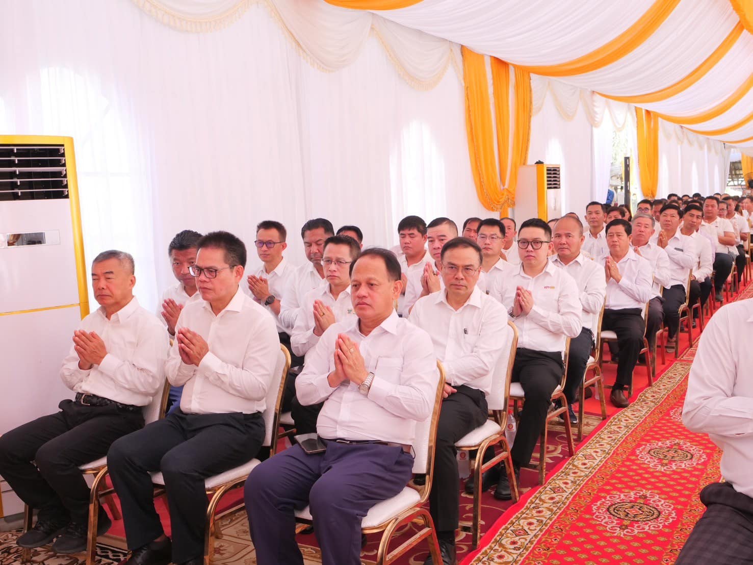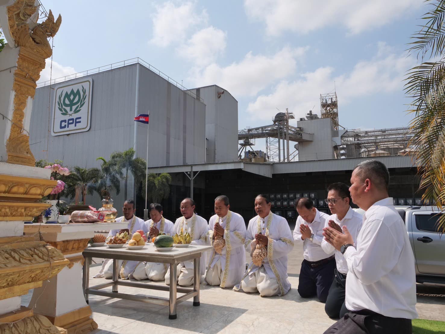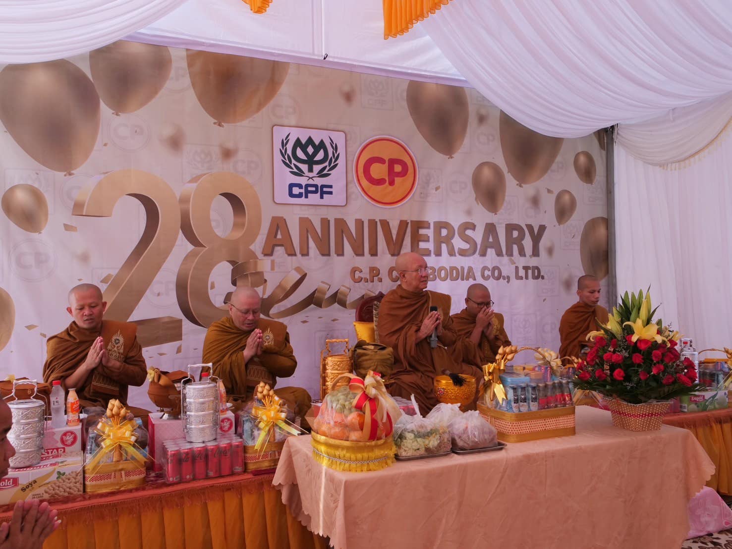คุณวิทยา เกรียงไกรวิทย์ กรรมการผู้จัดการ ซี.พี. กัมพูชา พร้อมด้วยคณะผู้บริหารระดับสูง และพนักงานจากทุกกลุ่มธุรกิจทั่วประเทศ กว่า 250 คน จัดพิธีเจริญพระพุทธมนต์ เนื่องในโอกาส ซี.พี. กัมพูชา ฉลองครบรอบ 28 ปี เริ่มจากพิธีไหว้พระพรหม ถวายภัตตาหารและปัจจัยไทยธรรม โดยมี สมเด็จพระอภิสิริสุคนธามหาสังฆราชาธิบดี (บัวร์ กรี) ฝ่ายธรรมยุติกนิกายแห่งกัมพูชา เป็นประธานในพิธีสงฆ์ ณ โรงงานผลิตอาหารสัตว์พนมเปญ
