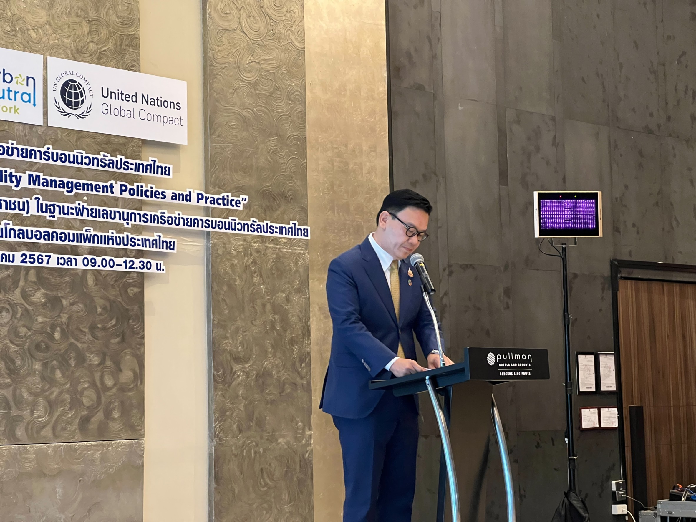 On 11 July 2024, the United Nations Global Compact Network Thailand (UNGCNT) joined hands with the Thailand Greenhouse Gas Management Organization (TGO) and the Thailand Carbon Neutral Network (TCNN) to organize a seminar titled “Enhancing Corporate Sustainability Management Policies and Practice” at the Pullman King Power Hotel, Bangkok. The seminar served as a platform for the exchange of information and experiences among members of TCNN on corporate sustainability management and disclosure, which are critical tools for benchmarking performances against indicators and goals and mitigating risks associated with climate change. More than 150 companies from various industries, including financial institutions and research organizations, attended the seminar.