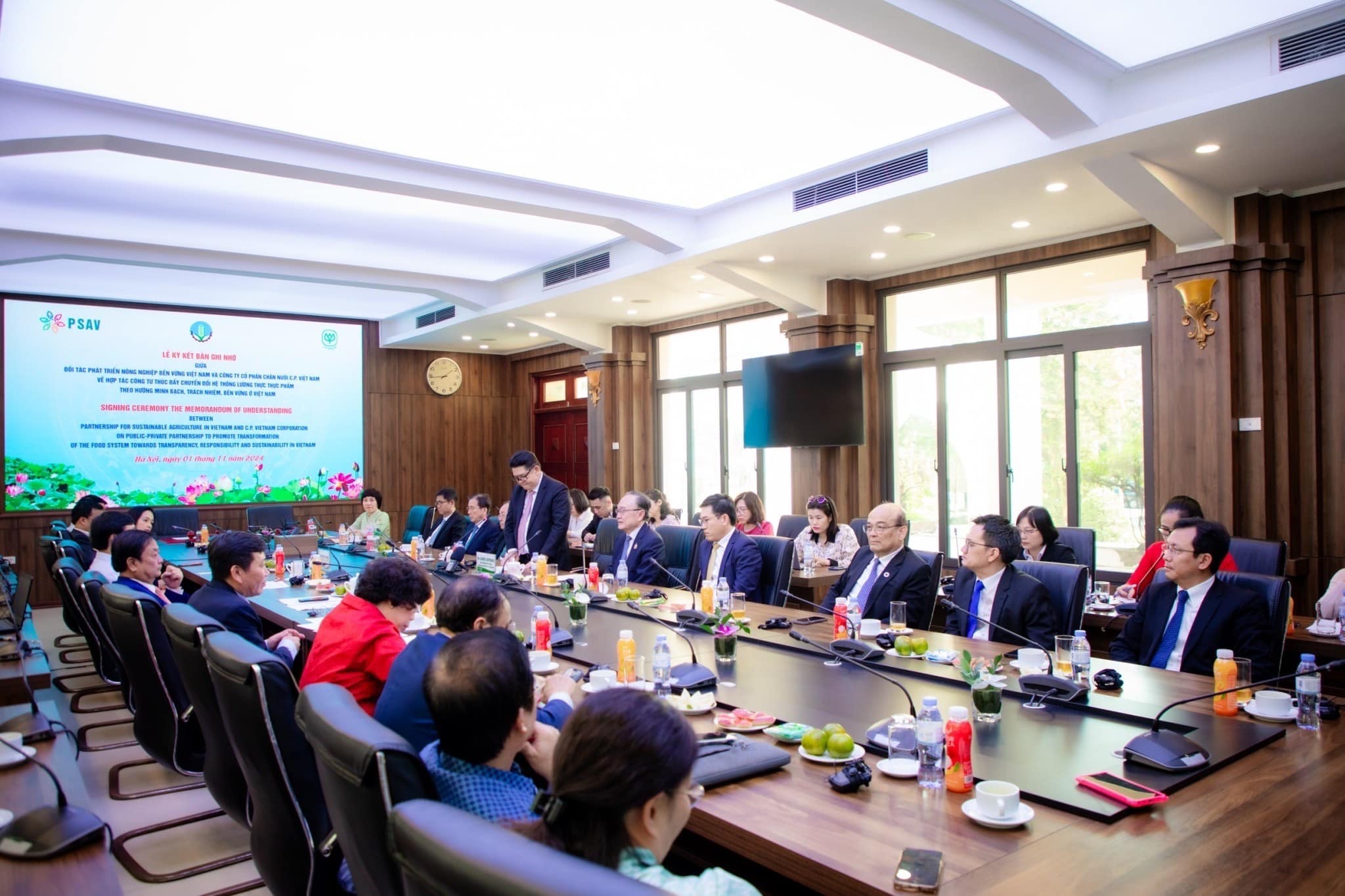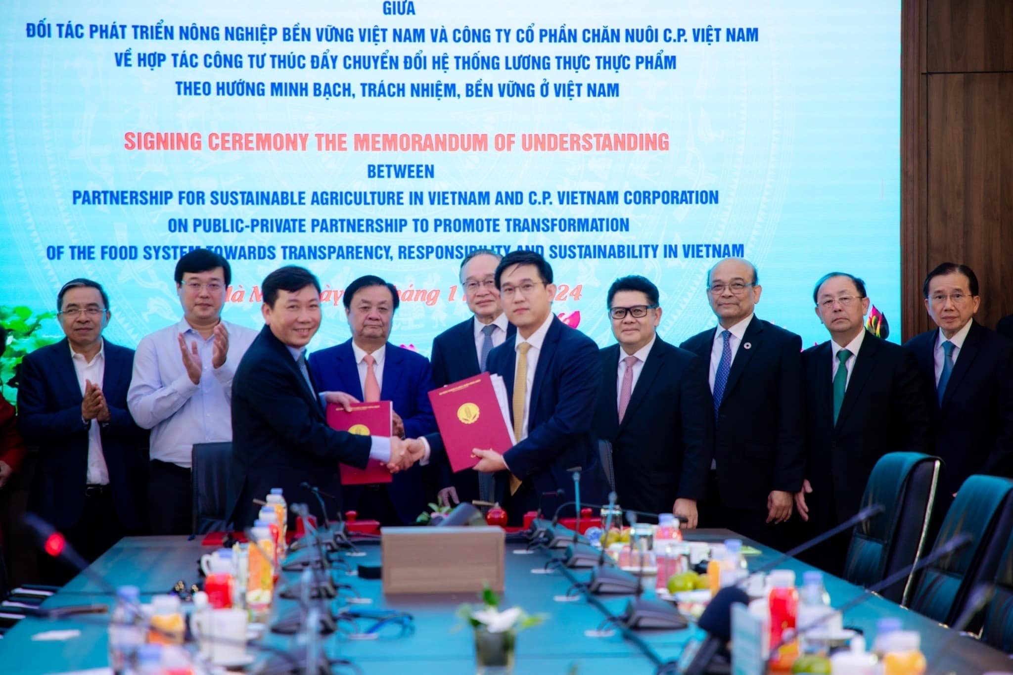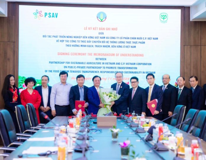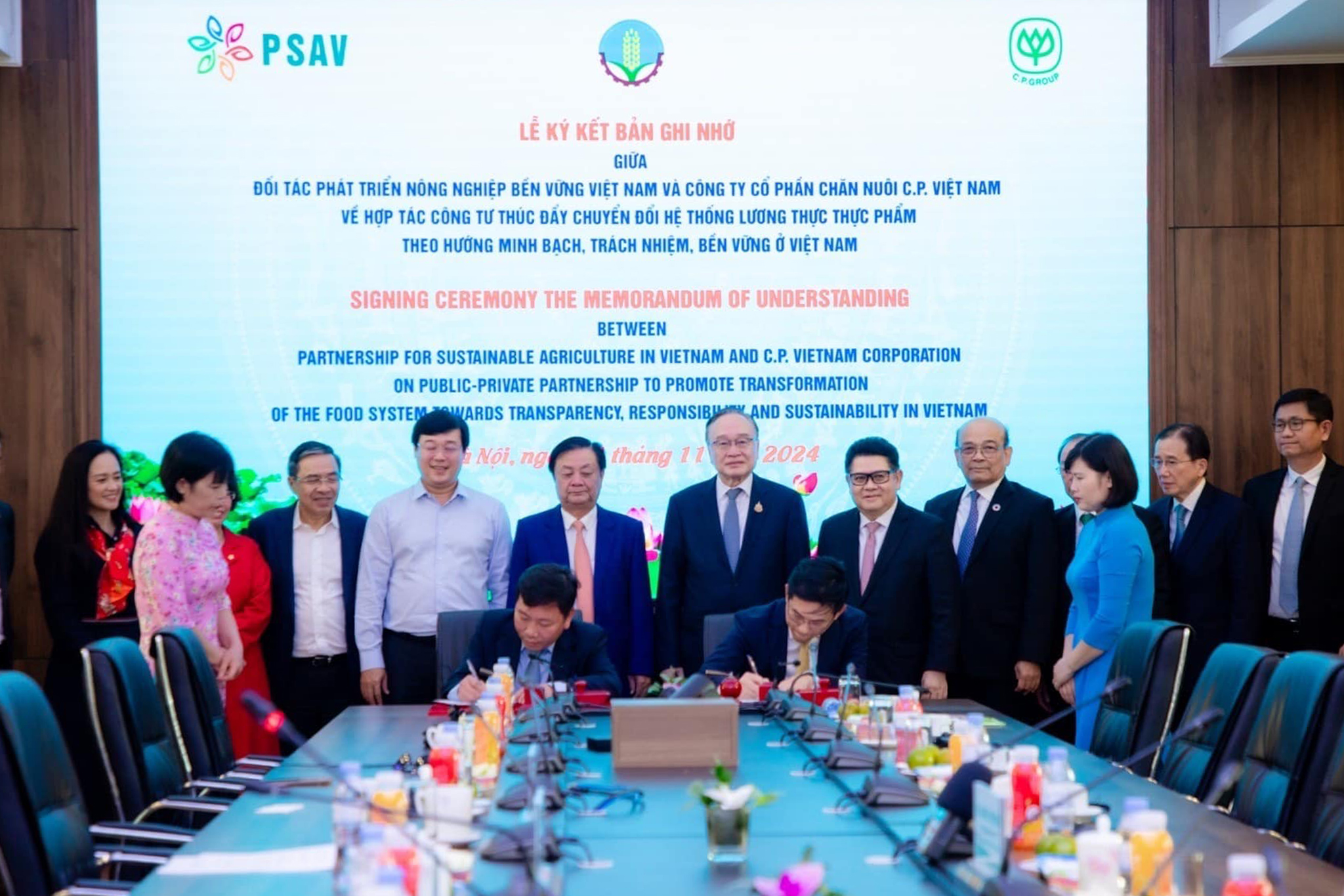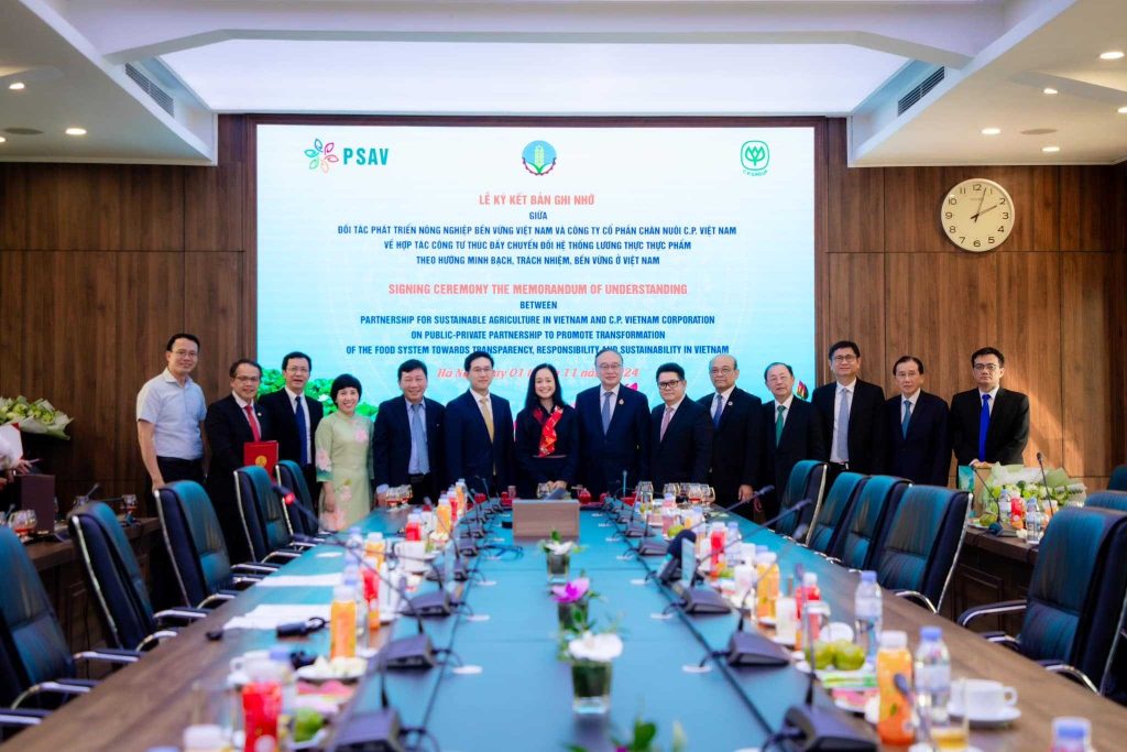 พิธีลงนามความร่วมมือครั้งสำคัญนี้ ได้รับเกียรติจากคุณเล มินห์ ฮว่าน รัฐมนตรีว่าการกระทรวงเกษตรและพัฒนาชนบทเวียดนาม และคุณอดิเรก ศรีประทักษ์ ประธานคณะกรรมการบริหาร บริษัท เจริญโภคภัณฑ์อาหาร จำกัด (มหาชน) ร่วมเป็นประธานในพิธีการลงนามระหว่าง ซี.พี.เวียดนาม และองค์กร PSAV (The Partnership for Sustainable Agriculture in Vietnam) องค์กรที่จัดตั้งขึ้นภายใต้การกำกับดูแลของกระทรวงเกษตรเวียดนาม โดยมี คุณปวริศ เอื้ออมรวนิช ซีอีโอ ซี.พี.เวียดนาม เป็นผู้ลงนามความร่วมมือดังกล่าว นอกจากนี้ น.สพ.สุจินต์ ธรรมศาสตร์ ประธานผู้บริหารฝ่ายปฏิบัติการ ธุรกิจสัตว์น้ำ ซีพีเอฟ คุณมนตรี สุวรรณโพธิ์ศรี รองประธานกรรมการ ซี.พี.เวียดนาม และคุณปวริศ เอื้ออมรวนิช ซีอีโอ ซี.พี.เวียดนาม ร่วมเป็นสักขีพยานในพิธีนี้ด้วย