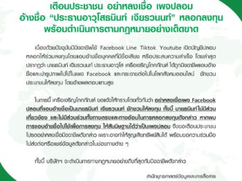 เตือนประชาชน อย่าหลงเชื่อ เพจปลอม อ้างชื่อ “ประธานอาวุโ […]